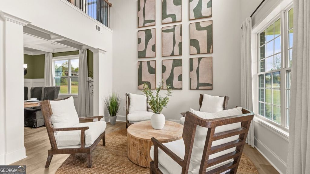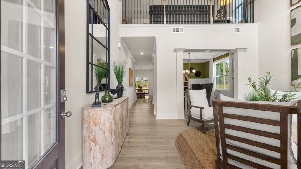 Step inside this beautifully designed home and be welcomed by a grand two-story formal living room that makes a lasting first impression. The designer kitchen features 42 cabinets, a walk-in pantry, Lusso Quartz countertops, and an island overlooking the breakfast area and family room - perfect for entertaining! The formal dining room boasts elegant coffered ceilings and 60 wainscoting, adding timeless sophistication. Cozy up by the marble-surround fireplace on cool evenings or host guests in the main-level bedroom with a full bath and shower. Upstairs, a spacious loft offers the ideal flex space for family time, a media area, or a home office. The luxurious owner's suite includes a sitting room, his-and-hers vanities, and a deluxe spa bath for the ultimate retreat. Generously sized secondary bedrooms provide plenty of comfort and versatility. This Grayson gem perfectly blends style, comfort, and space in a highly desirable community - schedule your private tour today and fall in love with your new home!