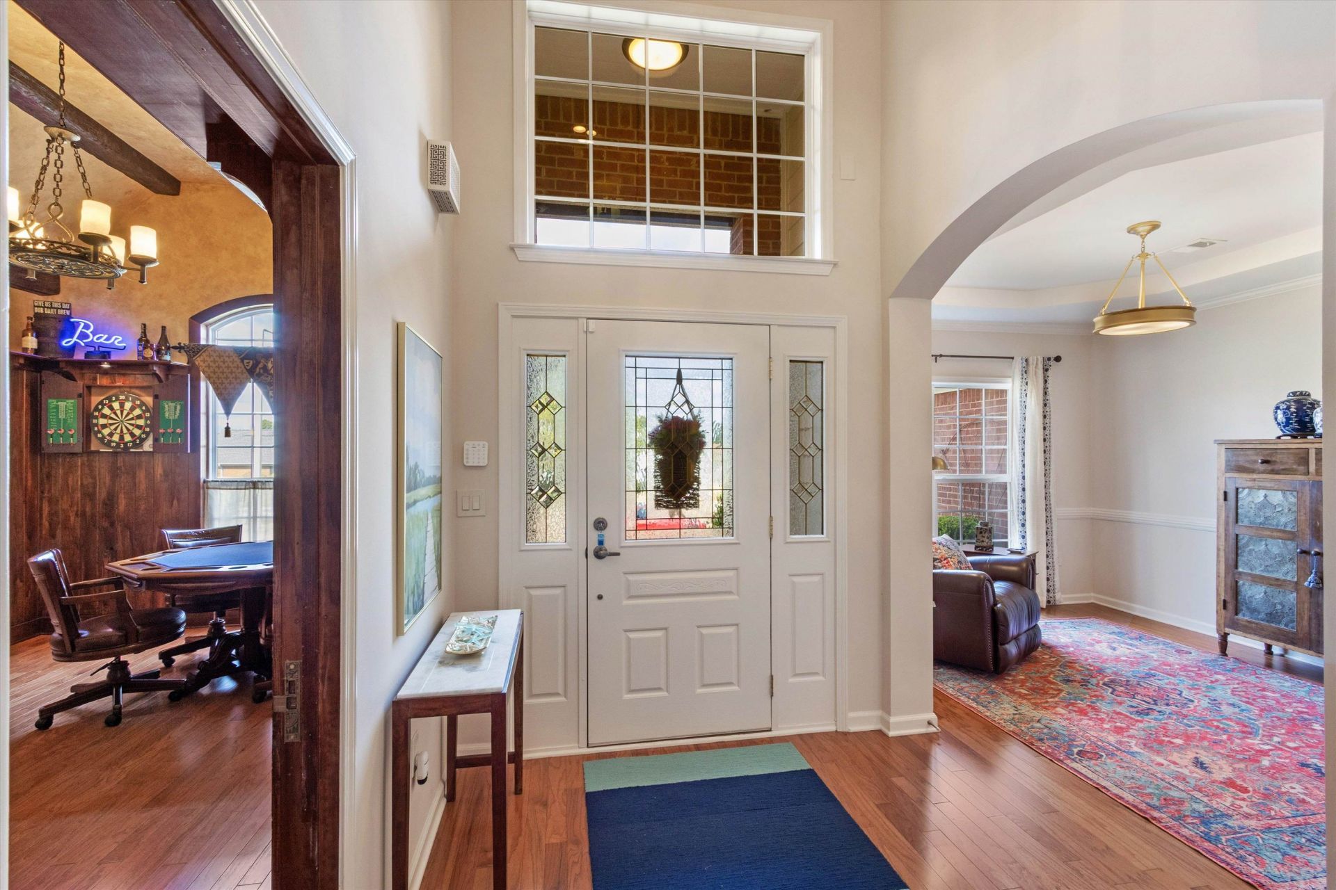 Meticulously maintained 5-bedroom, 4-bath home offers @4,000 sq ft of beautifully updated living with over $300,000 in upgrades PLUS whole house generator. Featuring a desirable 2.5 car garage, this home impresses the moment you walk in. The home boasts rich hardwood floors and fully renovated kitchen equipped with 5 eye gas cooking, & Bosch dishwasher?perfect for both everyday living and entertaining. With 2 luxurious primary suites, 2 laundry rooms?one on the first floor and a private third-floor retreat featuring a sitting area and dual closets, this layout offers flexibility and comfort for any lifestyle. On the first floor, you'll also find a versatile space currently designed as a pub room, complete with rich wood paneling, a bar, mini refrigerator, freezer which easily converts into a second bedroom if desired. Step outside to your own backyard oasis featuring a covered patio, serene koi pond, and cascading waterfall. This one-of-a-kind home is truly a showstopper!
