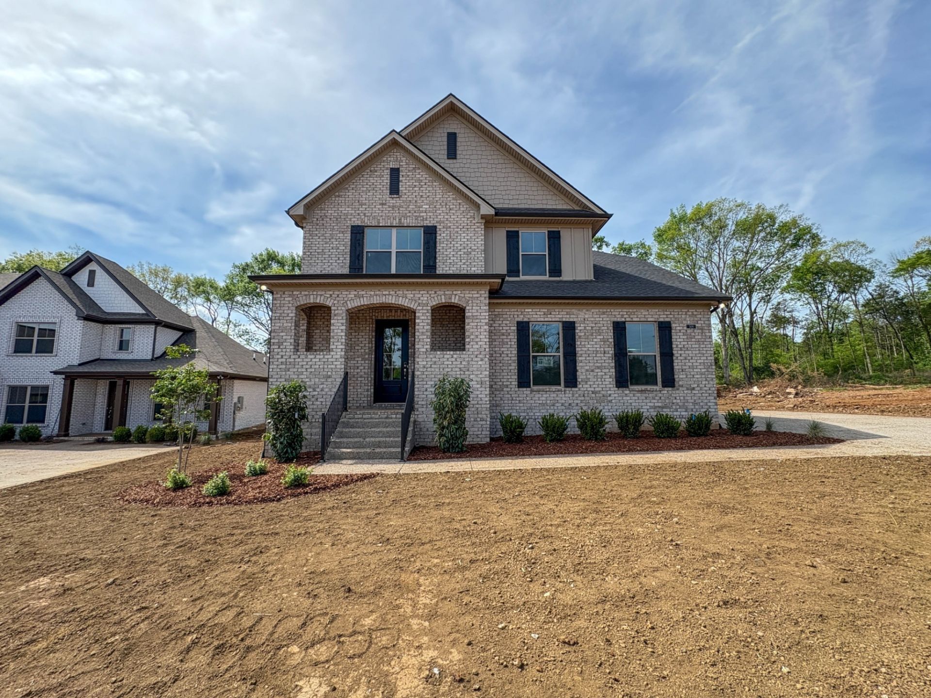 Beautiful all-brick new construction located on a quiet cul-de-sac in the desirable Watermill community. This 4-bedroom, 3.5-bath home offers 2,511 sq ft of thoughtfully designed living space with a flexible floorplan ideal for everyday living and entertaining. The main-level primary suite provides privacy and convenience, while the open-concept living area features a cozy family room fireplace and durable laminate plank flooring. The kitchen showcases elegant white cabinetry with a contrasting slate island, granite countertops, stainless steel appliances, and stylish backsplash. Upstairs includes three spacious bedrooms, two full baths, and a large bonus/rec room. Additional highlights include crown molding, entry foyer, modern lighting, side-entry 2-car garage, and crawl space foundation. Convenient location with easy access to I-40, shopping, dining, and schools. Estimated 2026 completion.