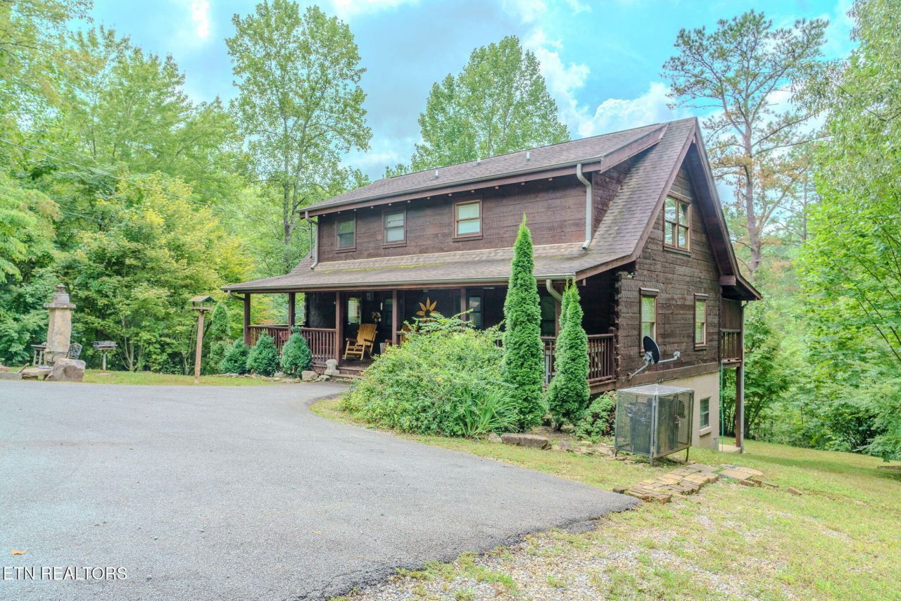 Your private Investment mountain opportunity awaits! Nestled away on 2.38 secluded acres plus the opportunity to add another cabin. Just 10-minute drive to Gatlinburg, this 4-bedroom, 3-bath cabin perfectly blends space, comfort, and investment potential. Step inside to a warm, open layout on the main level with vaulted ceilings, rich wood accents, and plenty of natural light. Here, you'll find two inviting bedrooms and a full bath ideal for family or guests. Upstairs, the loft retreat offers a fun game area , cozy bunk beds and an additional bedroom and bonus sleeping space, including a full bath, creating the perfect setup for entertaining and group getaways. Recently finished basement adds even more living space with a second family room, extra sleeping area and an additional bedroom & bath with more room to expand, or extra storage. Outside, guests will love the peaceful setting and the scenery of mountain living. Relax on wood rocking chairs on the front porch with your morning coffee or evening star gazing. Enjoy the relaxing hot tub under the evening moon, Gather around the fire pit with family and friends making memories for a lifetime. Currently an income-producing short-term rental, this property is being sold fully furnished and is ready for your next adventure, whether a vacation Home full-time mountain residence, or next investment. while just minutes' drive to Dollywood (20 minutes), Gatlinburg/Anakeesta (10 minutes), and Knoxville's airport (40 minutes). Enjoy all of this with strong rental and a location near the 13-million-visitor Great Smoky Mountains National Park!