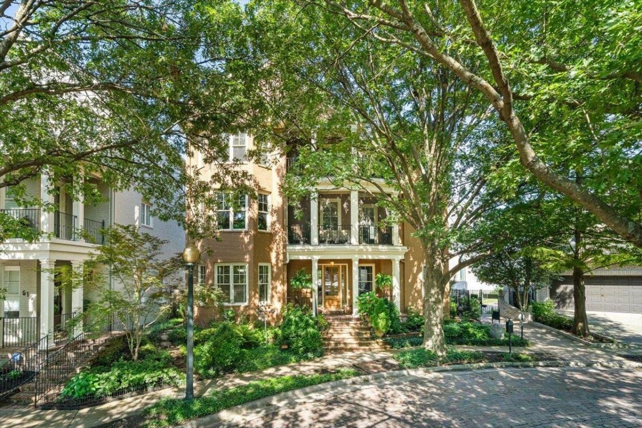 Experience treetop living in South Bluff, a coveted gated community in downtown Memphis. This architectural gem features windows on all three levels, flooding the home with natural light and showcasing sweeping views of the river and historic fountain. Enjoy balconies on three sides of the home across every floor, plus a screened patio where you can hear the fountain while enjoying serene evenings outdoors. A private elevator provides easy access to all levels. The luxurious primary suite offers comfort and privacy, while the chef's dream kitchen flows into an airy den?perfect for entertaining. Custom built-ins elevate the living room and office. Additional features include a gym area, media room, and parking for four cars. Hardwood floors throughout and a 2022 roof add lasting value. Walk to dining, the farmers market, and Tom Lee Park from this extraordinary home.