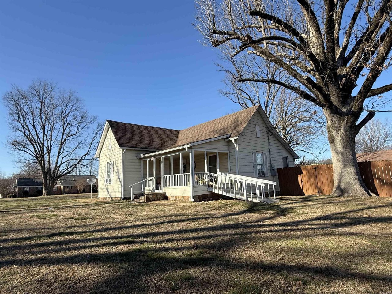 In the heart of Newark, this nicely updated home offers comfort, character, and convenience. Step inside to tall ceilings that create an open, airy feel throughout. The home features two bedrooms and one bathroom, plus a dedicated dining room and a cozy breakfast nook with built-in cabinetry. A bright sunroom adds valuable flex space and could easily serve as a third bedroom, office, or sitting area.Outside, you'll enjoy a nice level lot shaded by mature trees, along with a shop building--perfect for storage, hobbies, or projects. A storm shelter adds extra peace of mind. All of this in a convenient location close to amenities