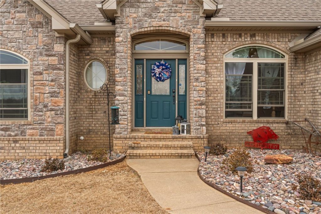 The Perfect location out of town but close to conveniences, is where you'll find this well loved and maintained home! Located just off of I-49 between the River Valley and Northwest Arkansas makes this a very sought after spot. This 3 BR, 2 1/2 bath brick & rock home hosts a formal dining, office and open living area with a gas log fireplace and totally updated kitchen with new cabinets, quartz counters, appliances, pantry with roll out drawers and a large island with a farmhouse sink that will make your cook Happy! The master suite has a large walk in shower, whirlpool tub and double sinks. Newer windows, LVP flooring, some painting, light fixtures, carpet in 2 bedrooms, Ring doorbell & camera, keyless entry & one new garage door are some of the upgrades you'll find. The privacy fenced backyard with an above ground pool and Trex floored patio make a peaceful retreat or to entertain friends. The home has newer guttering, faucets, mailbox and 50 amp service for an RV. Call your favorite realtor to see it today!!