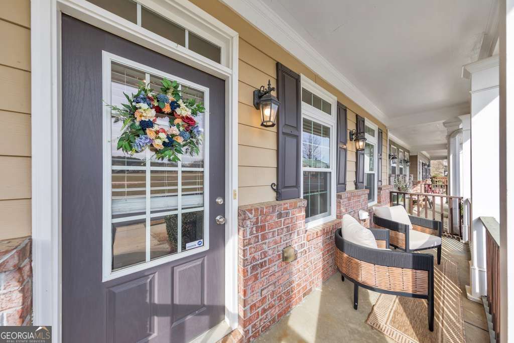 Welcome to this charming and beautifully updated 3 bedroom / 2.5 bathroom townhome in the sought-after River Park community, located in the heart of Woodstock and zoned for top-rated schools. This home features new windows throughout with a lifetime transferable warranty and a fully remodeled primary bathroom with premium finishes and products, offering both peace of mind and elevated style. A welcoming covered front porch sets the tone as you step inside to a thoughtfully designed interior featuring arched doorways, detailed crown molding, upgraded designer lighting, and durable LVP flooring throughout the main living areas. The spacious family room flows seamlessly into the open concept dining area and kitchen, creating the perfect space for everyday living and entertaining. The kitchen is a standout with Calacatta quartz countertops, a breakfast bar, pantry, and stainless steel appliances. Upstairs, the oversized primary suite offers tray ceilings, a private rear deck, a walk-in closet, and a beautifully updated ensuite bathroom with dual vanities and a sleek frameless glass shower. Two generously sized secondary bedrooms, both with vaulted ceilings, share a full bathroom in the hall. A conveniently located laundry closet completes the upper level. Additional features include an attached 1-car garage and access to fantastic community amenities including a pool, clubhouse with fitness center, playground, basketball and tennis courts, and a firepit area. Ideally situated with easy access to I-575, Downtown Woodstock, Downtown Canton, and an abundance of shopping, dining, and entertainment options, this home truly has it all.