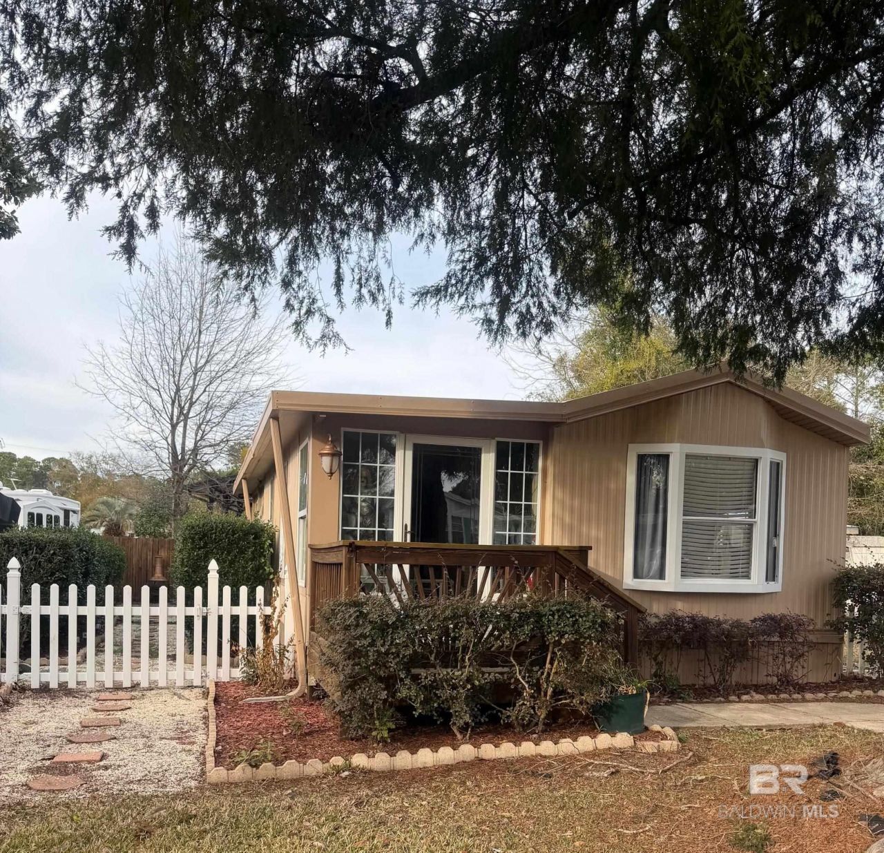 Charming coastal retreat featuring two bedrooms and one bath, designed for easy seaside living and entertaining. This inviting home offers a bright and airy layout with abundant natural light and a welcoming sunroom that provides space for morning coffee, reading, or additional entertaining. The cozy living areas flow comfortably, creating a relaxed atmosphere. A spacious back porch with grill overlooks a private backyard and firepit, for enjoying coastal breezes and outdoor gatherings. The property also includes a convenient storage building for tools, beach gear, or hobbies. A durable metal roof adds both character and long-term value, offering peace of mind for years to come. Whether you're searching for a full-time residence or a vacation getaway, this delightful coastal home combines comfort, charm, and privacy in one appealing package. Located in the beachside, golf cart, pet-friendly community of Spanish Cove with 24 hour security on the Alabama/Florida line, this home is just 5 minutes from the Lillian boat launch and 15 minutes from Gulf beaches. Enjoy amenities like a private beach, 500-ft pier, two clubhouses, year-round pool, sports courts, fitness center, playground, trails, and golf cart access. The community offers social events, games, classes, clubs, and group travel. Whether you're looking for a full-time residence or a peaceful coastal getaway, this is a great place to call home and coastal living at its best. Schedule your showing today. Buyer to verify all information during due diligence.