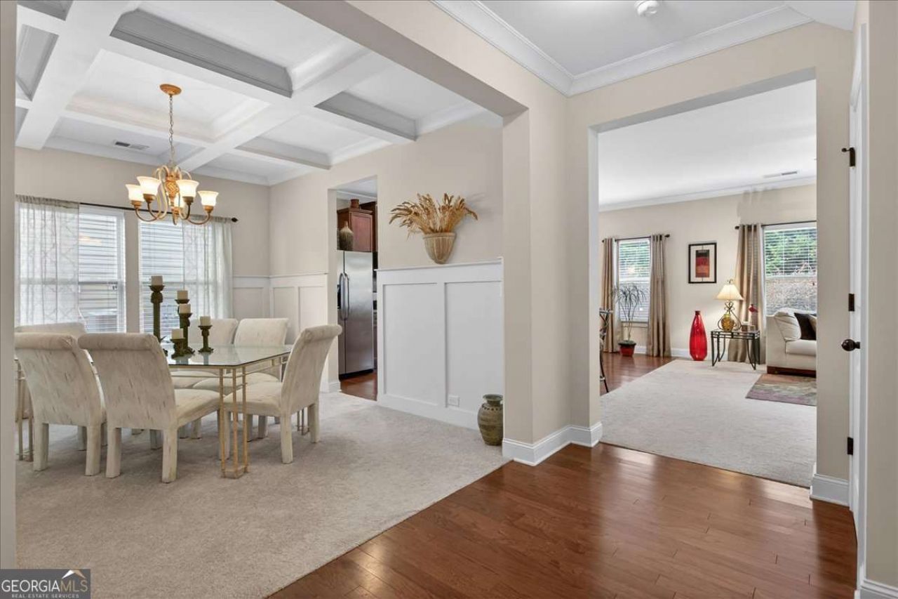 Public: Welcome to 5365 Rialto Way - a 3-bedroom, 2.5-bath home located in the desirable Bridgetowne community in Cumming. This thoughtfully designed home offers both comfort and functionality with beautiful interior details and convenient access to community amenities and nearby shopping and dining. Inside, the main living area features recessed lighting and a cozy gas log fireplace, creating a warm and inviting space for relaxing or entertaining. The kitchen is equipped with granite countertops, stainless steel appliances, natural gas cooking, and a charming breakfast area highlighted by custom built-in cabinetry. A coffered ceiling adds an elegant touch to the dining room, while bronze hardware throughout the home provides a cohesive and stylish finish. The spacious primary suite offers a trey ceiling, a large walk-in closet, and a well-appointed bathroom featuring a double vanity, separate tub, and shower. Additional features include a security system with motion sensors and a new roof for added peace of mind. Step outside to enjoy the patio and fully fenced backyard, offering a great space for outdoor gatherings or everyday relaxation. Residents of Bridgetowne enjoy access to a variety of community amenities including a clubhouse, swimming pool, playground, tennis courts, and pickleball courts. Conveniently located just around the corner from shopping, dining, and everyday conveniences, this home offers an ideal combination of community living and accessibility.