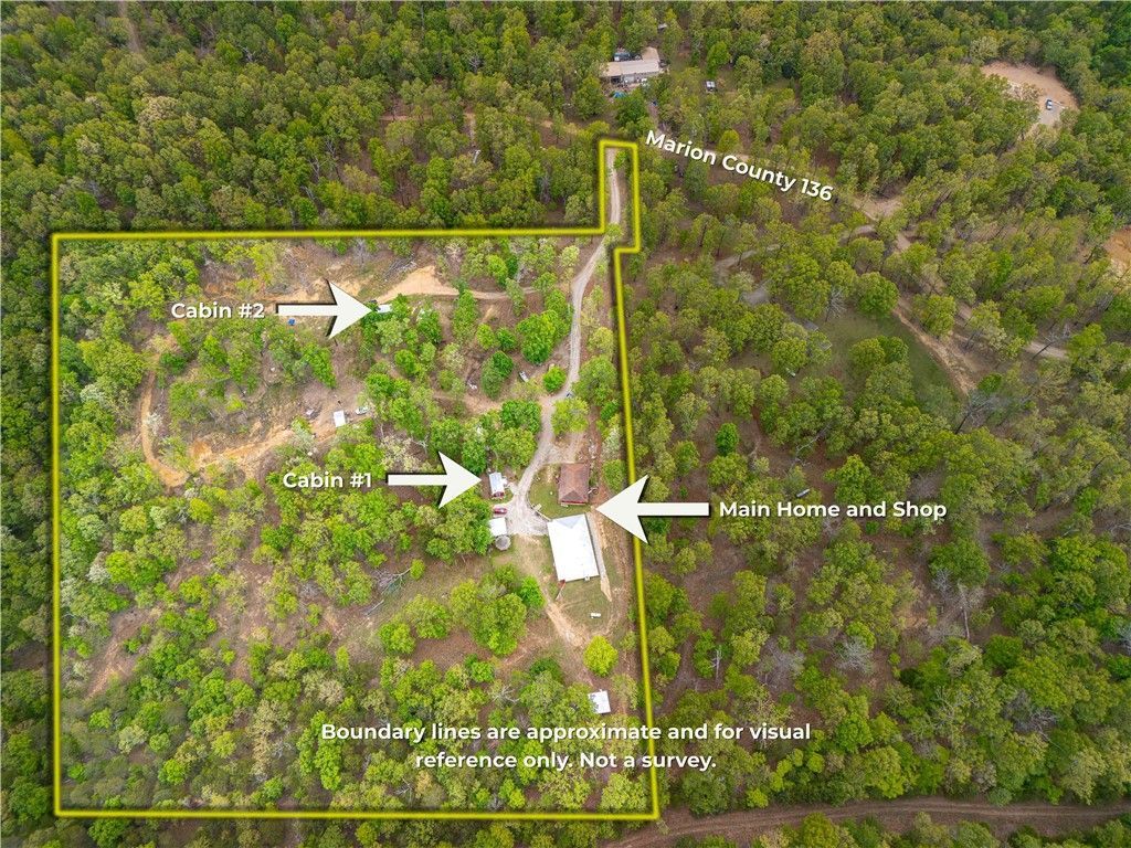 Ideal Family Retreat: This remarkable property offers an ideal setup for a family retreat, encompassing 10.34 wooded acres m/l adjacent to a government greenbelt, providing year-round views of Bull Shoals Lake. The main residence is an energy-efficient berm home featuring three bedrooms and two bathrooms. Additional amenities include a 26 x 42 detached garage/shop, complete with a stool and wood stove, as well as an 8 x 16 storage container. The property also boasts two additional tiny homes, with the option for a third. Water supply is currently sourced from a well, with the possibility to connect to city water. The unrestricted property is conveniently located just a short drive from the Oakland marina and boat launch, and high-speed internet is available on-site.