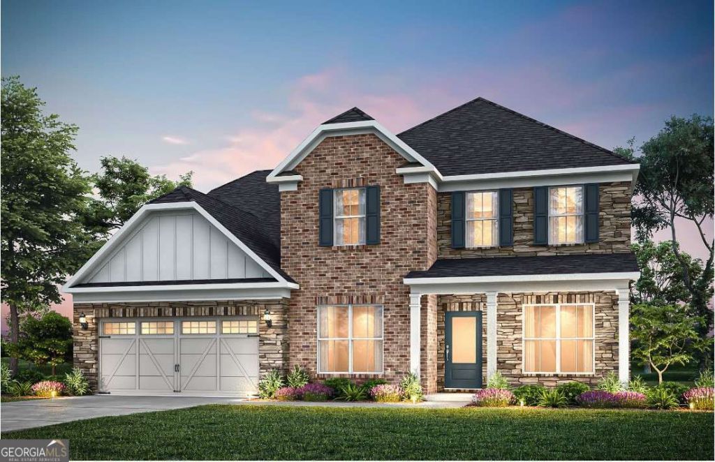 READY NOW- ASK ABOUT OUR RATE PROMO- Step into the Riverton-a beautifully designed 5-bedroom, 4.5 bath home located in the exclusive Oakwood community. From the moment you enter, you're welcomed by a bright foyer and a flexible space perfect for a home office or quiet retreat. The heart of the home is the open-concept gathering room, filled with natural light and flowing effortlessly into the chef-inspired kitchen featuring a large center island, walk-in pantry, and sunny cafe area-ideal for both casual meals and entertaining. On the main level, a private bedroom with an attached full bath offers comfort and convenience for guests or multi-generational living. Upstairs, you'll find a spacious loft perfect for game nights, movie marathons, or a homework hub. The owner's suite is a true sanctuary with dual vanities, a large walk-in tiled shower with built-in seat, and an oversized closet. Three additional bedrooms share well-appointed baths, complemented by a convenient second-floor laundry room. All set within a thoughtfully planned community just minutes from top-rated Forsyth schools, shopping, and dining. Photos are of model representation.