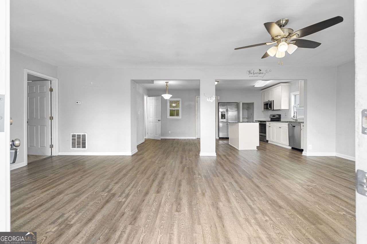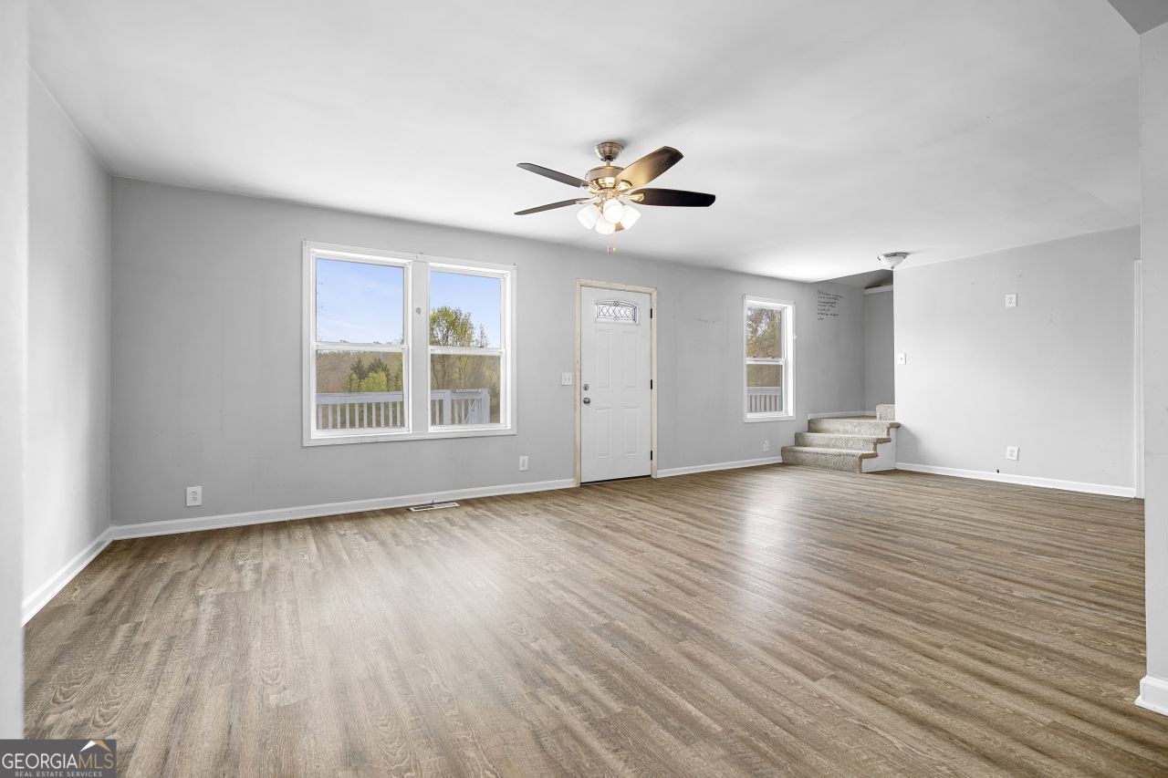 Welcome to this 3 bedroom, 2.5 bathroom home nestled in the outskirts of Dawsonville! Situated on a spacious lot with peaceful surroundings, this property offers the perfect blend of comfort, functionality, and value. Step inside to an inviting open-concept living space featuring durable LVP flooring, fresh neutral paint, and abundant natural light throughout. The main living area flows seamlessly into the kitchen, making it ideal for both everyday living and entertaining. The kitchen is well-appointed with granite countertops, ample cabinet space, stainless steel appliances, and a large island that provides additional prep space and seating. The primary suite is conveniently located on the main level, offering privacy and ease of access. Upstairs, you'll find additional bedrooms and a flexible layout perfect for guests, family, or a home office. Enjoy your morning coffee on the spacious front deck overlooking the front yard, or unwind in the evenings on your covered back porch-perfect for relaxing or hosting. Whether you're a first-time homebuyer, investor, or looking for a move-in ready property in a growing area, this home checks all the boxes. Don't miss this opportunity-schedule your showing today!