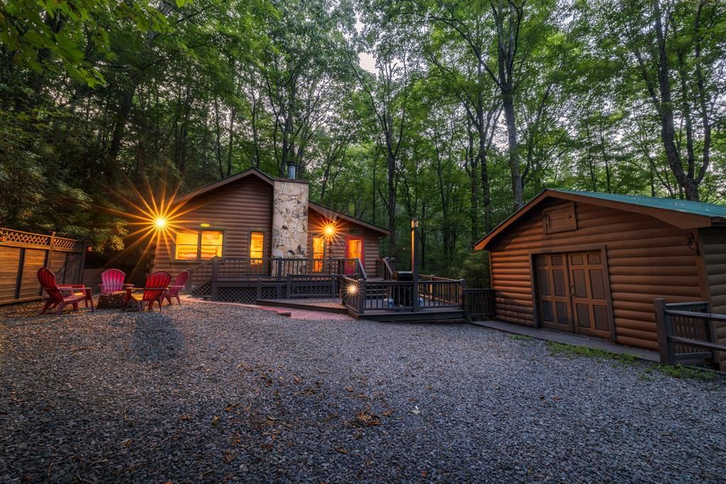 Welcome to your tranquil escape in the heart of Cherry Log! Nestled on a serene 1.1-acre lot within the desirable Cherry Lake subdivision, this charming 3-bedroom, 2-bathroom cabin offers both privacy and community amenities, including exclusive access to the picturesque Cherry Lake. Currently serving as a successful short-term rental, this inviting retreat also presents a fantastic opportunity for a full-time residence. As you step inside, you'll be welcomed by the warm ambiance of the main level's cozy living room, complemented by two comfortable bedrooms and bathroom. Descend to the fully finished basement, where extra sleeping accommodations await in the bunk room, alongside a vibrant game room perfect for entertainment. The terrace-level patio invites you to unwind in the hot tub, surrounded by lush woods, offering an idyllic setting for serenity and seclusion. Whether you're seeking a lucrative investment or a peaceful home to call your own, this cabin in Cherry Log is a delightful blend of comfort and natural beauty. Don't miss the chance to make it yours!