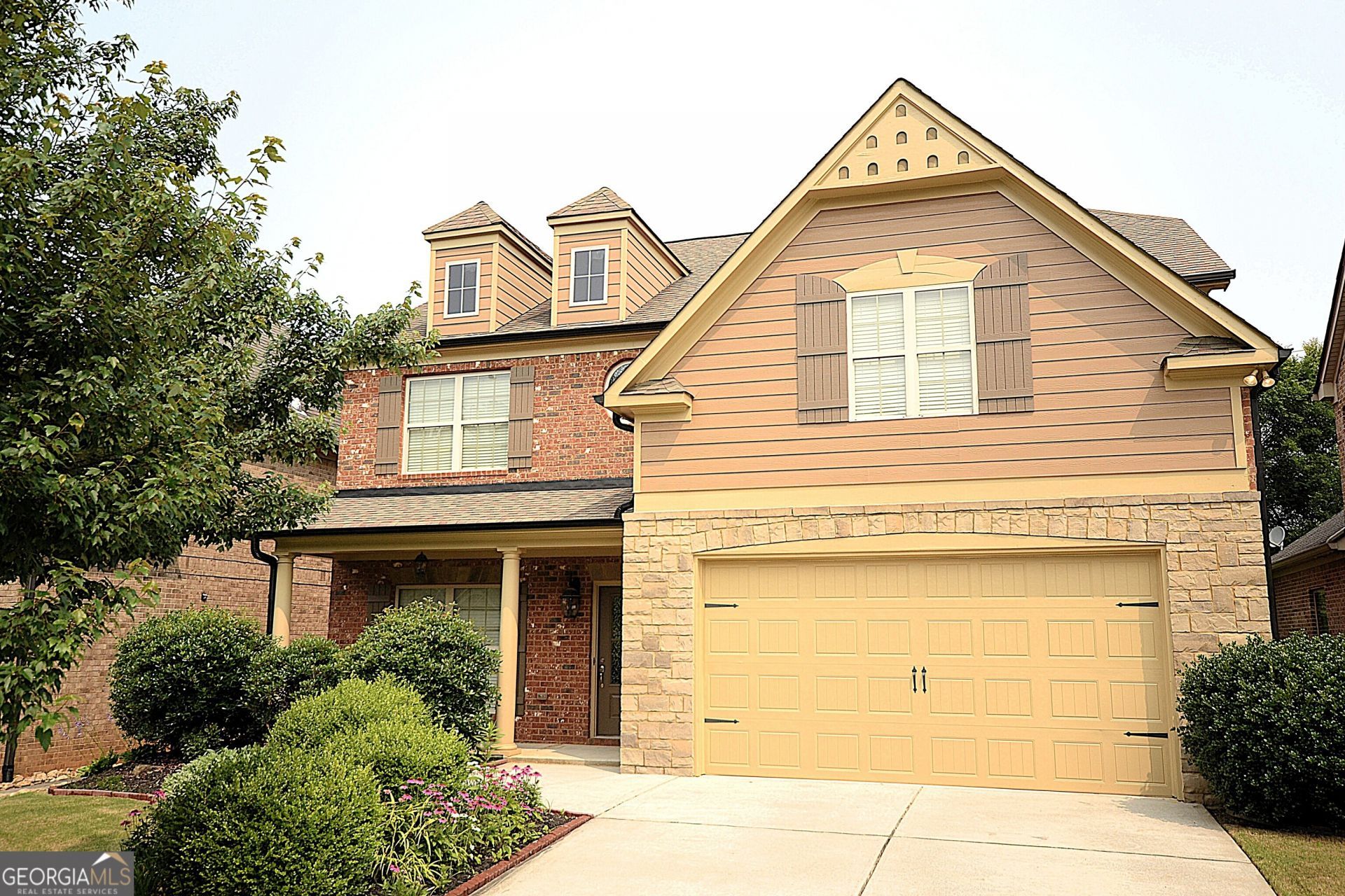 Ideally situated within a picturesque gated community, this meticulously maintained home offers a desirable location just minutes from the Mall of Georgia and I-85. Nestled within the esteemed Collins Hill school district, this stunning 3-sided brick home features a generously sized bedroom with a full bath on the main floor, a massive primary suite and three spacious secondary bedrooms upstairs. The gourmet kitchen is appointed with ample cabinetry and counter space. The open concept floor plan seamlessly integrates the kitchen and family room, perfect for gatherings. Manicured landscaping adorns the front and back yards, showcasing vibrant shrubs and flowers. This property represent the ultimate fusion of luxury and comfort. Welcome home!