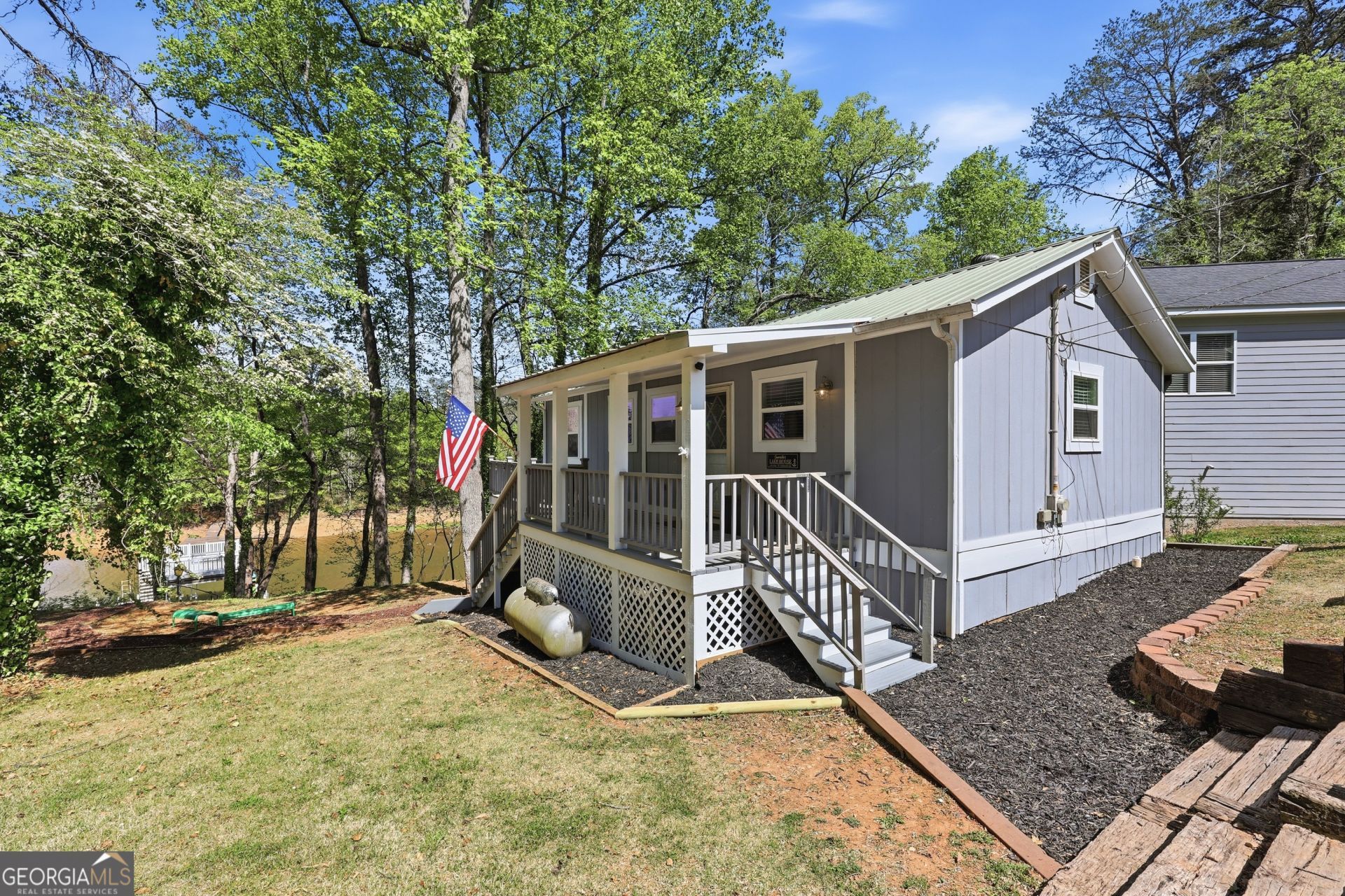 Unbeatable value on Lake Lanier! One of the very few true waterfront properties in this gated community offering its own private dock. This recently renovated, charming 1-bedroom, 1-bath retreat with bunkroom is tucked away in a quiet setting, perfect for relaxing weekends at the lake. Enjoy a gentle walk to the water's edge, leading to a 30x32 dock with party deck (permitted for a 32x32), along with a spacious wraparound deck overlooking the water, ideal for soaking in the views. The terrace level offers ample storage and room to expand, providing excellent potential to customize and add value. This lakeside community has so much to offer, including a community dock, pavilion, boat ramp, and boat storage. A rare opportunity for a true weekend getaway featuring a private dock, beautiful views, and easy access to the water, offering everything you need for effortless Lake Lanier living. Don't miss this one!