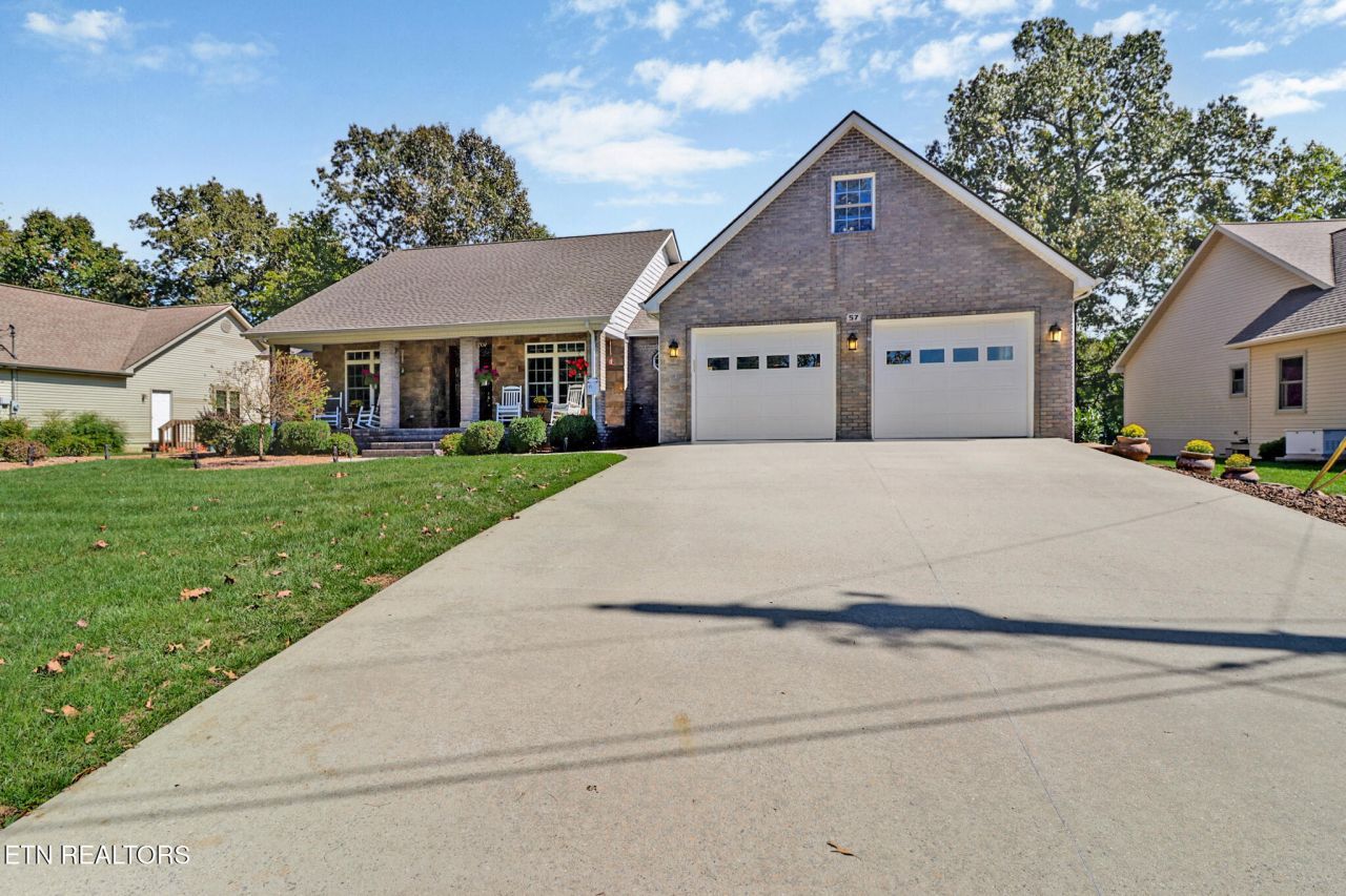 Custom Golf Front Home in Quiet Cul-de-Sac.Located in a peaceful cul-de-sac within one of the area's most desirable neighborhoods, this custom-built golf front home is a dream come true for golf enthusiasts. Located on the scenic #1 hole of The Brae Golf Course, the main living areas are designed to maximize the amazing views.A charming blend of stone and brick welcomes you with a covered front porch leading into a spacious foyer. The great room impresses with soaring cathedral ceilings, a cozy stone fireplace with gas logs, (TV over fireplace conveys). This thoughtfully designed split-bedroom, open floor plan home offers both comfort and functionality. A bright four-season sunroom opens to a large deck, creating seamless indoor-outdoor living perfect for entertaining.The heart of the home is a gourmet kitchen featuring abundant custom cabinetry, a central island, walk-in pantry (pantry shelving conveys), and breakfast bar-ideal for casual dining. The adjacent dinette and a formal dining room provide flexible options for hosting. A private office/den with French doors is situated off the foyer, offering a quiet workspace.The primary suite is a true retreat, featuring a generously sized bedroom, luxurious en-suite bath with a jetted tub, walk-in shower, and dual walk-in closets. Two guest bedrooms each offer walk-in closets and private or semi-private bath access-perfect for visiting family or friends.Additional highlights include:Upper-level bonus room ideal for a media room, hobby space, or guest suiteWell-equipped utility room with full sink and separate half bathOversized garage and backup generator powering the essentials for peace of mindExpansive maintenance-free deck with hot tub, glass panel railings, and a gazebo with sunshadesProfessionally landscaped with irrigation, patio area perfect for relaxing or entertainingBuried 500 gallon propane tankHeat pump with gas emergency backup for warmth on the coldest nightsNew architectural shingle roof (September 2025)This exceptional home is designed for easy living and year-round enjoyment. Inside and out, it offers everything you need and more. Come see it in person to truly appreciate all it has to offer!