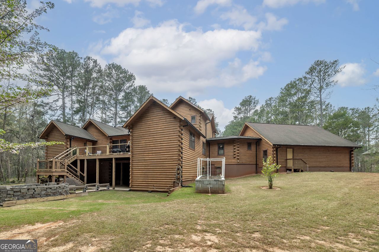 YOU'VE GOT TO SEE THIS HOME TO BELIEVE IT!! Beautiful Custom-Built Genuine Log Home. Vast Front Porch w/Handicap Ramp (MAIN LEVEL features) Upon Entry, OFFICE. GREAT ROOM w/Heart Pine Ceilings, Genuine Hardwood Floors, See-Thru Fireplace w/Gas Logs. Bright & Open KITCHEN: has Corian Countertops, Large Island, Separate Breakfast Bar and Custom Cabinets and access to Sunroom & Balcony. FORMAL DINING ROOM: w/Overhead Exposed Beams, Custom Lighting. LIBRARY w/Bay Window. WIDE HALLWAYS. Three (3) BEDROOMS on MAIN LEVEL. IN-LAW SUITE has Living area, Bedroom (tray ceiling), Large Walk-In Closet and wheelchair accessible Bath & Shower. HUGE LAUNDRY ROOM HAS FULL BATH w/Shower. GUEST BEDROOM and GUEST BATH. The Bath Features a Whisky Barrel Sink and Footed Tub. The Spacious PRIMARY SUITE Features Vaulted Ceilings, Flex Room & access to Sunroom. See-Thru Fireplace w/Gas Logs, a Large California Style Closet. The Primary Bath has Vaulted Ceilings, Vanity with Corian Top and stepless Double Shower with Glass Door. (TWO UPPER-LEVEL LOFTS w/Carpet Floors) LOFT 1- enter thru Dining Room up Stairs to the Vast Open Area with a View of the Great Room. This area has a Half Bath. LOFT 2- Spacious Bonus Area with an Opening to view the Main Level. (BASEMENT - LOWER LEVEL) Hallway access - Take Stairs or Lift Chair to the Daylight, Partially Finished, Open area with Media Room & Half Bath and a SAFE ROOM - w/Kitchenette & Food Storage areas. Exit Basement to Beautiful Covered Patio and Huge Firepit. EXTRAS: A state-of-the-art 10k SOLAR SYSTEM with Battery Backup System; 4 Zoned HVAC System for more efficient Heating & Cooling and 2 - 50 Gal. ENERGY EFFICIENT WATER TANKS WITH HOT WATER RECIRCULATION. The ATTACHED, Over-sized 3 CAR GARAGE has WORKSHOP/STORAGE AREA. The 3rd Bay has Wide Stairs Leading to Storage space. NOTE: This home has so many special Features that are too many to mention. It has so much space, perfect to meet the needs of a Large Family.