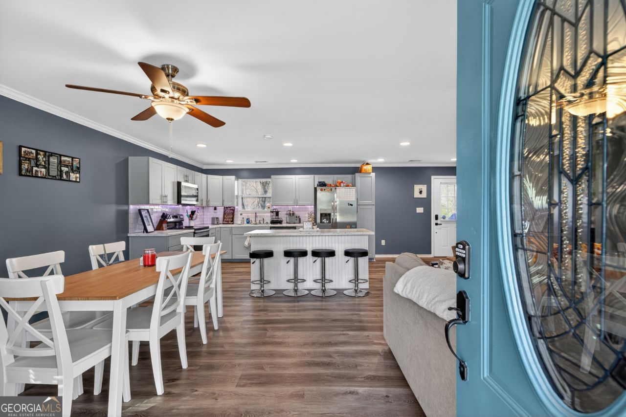 Discover this beautifully updated 3 bedroom, 2 bath ranch offering 1,415 sq ft of modern, move-in-ready living on a spacious 0.8-acre lot. Step inside to an inviting open-concept layout featuring brand-new luxury vinyl plank flooring and a fresh, full repaint of the entire interior and exterior, giving the home a bright, clean, like-new feel. The renovated kitchen stands out with white cabinetry, stainless steel appliances, a large center island, and ample counter space-perfect for cooking, gathering, and everyday living. The open flow between the kitchen, dining area, and living room creates a warm, functional space ideal for both entertaining and relaxing. Outside, the wide, level lot offers endless potential, from outdoor dining to gardening or future expansion. Located just 2 miles from the new Costco and major community development on Jodeco Road, the home provides a blend of privacy and growing convenience. Thoughtfully updated and beautifully refreshed, this charming ranch is ready for its next owner.