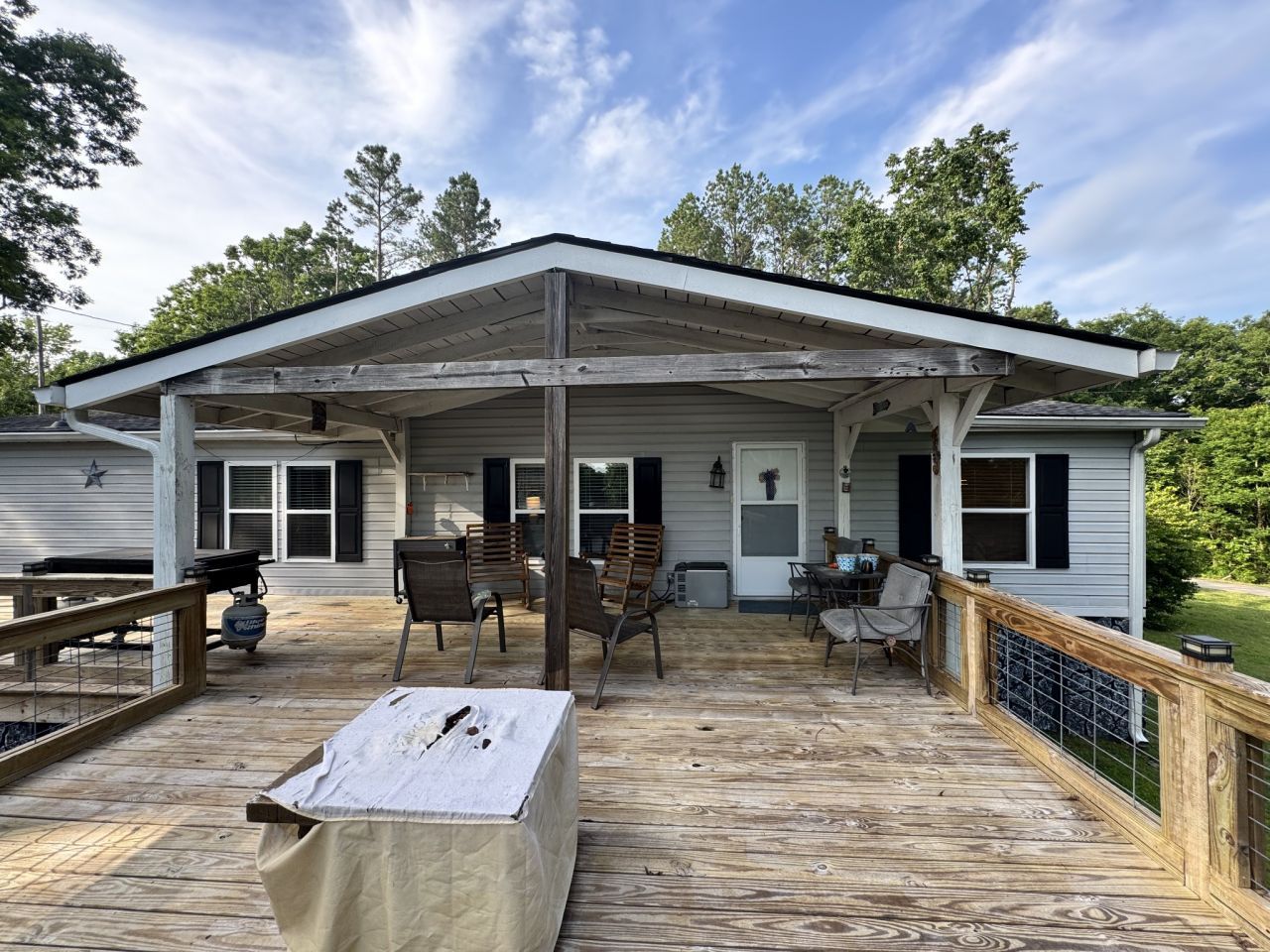 Very well kept and clean home mostly furnished. Ready for the Summer Fun on the river. Partial lakeview, private setting, newer windows, new roof, gas logs in fireplace. Generac Generator. all appliances remain. extra-large carport and storage for the water toys. Shared well 330 yearly full time resident, 230 yearly part time.