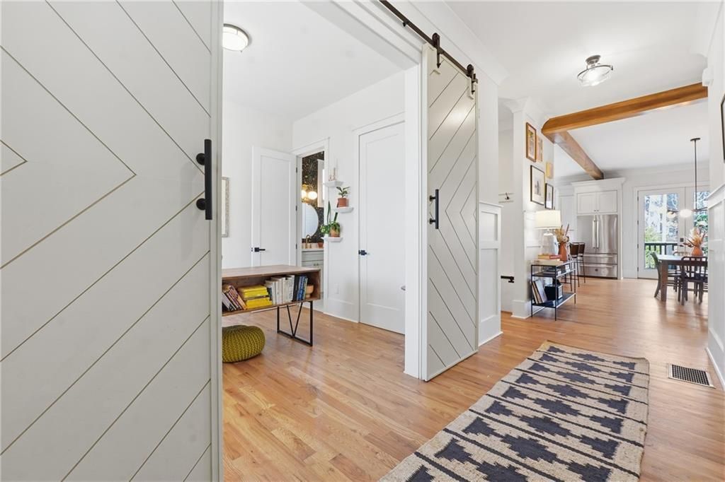 Located in historic Norcross within the coveted Kennemore Manor neighborhood, this stunning modern Craftsman-style home sits in a quiet enclave of just 12 homes, minutes from downtown Norcross?and with no HOA. Tucked away on a corner lot in a cul-de-sac, this home offers both privacy and convenience.Step through the front door to beautiful hardwood floors and a thoughtfully designed floor plan. The main level features a bedroom with a full bath, perfect for guests or a home office. The gourmet kitchen is the heart of the home, open to the dining and family rooms and equipped with a 48 range with double ovens, wine refrigerator, and an oversized island?ideal for entertaining. Just off the living space, an expansive deck overlooks the Hunter-Walker Trail, creating a peaceful indoor-outdoor retreat.The second floor offers hardwoods throughout the hallway and primary bedroom, along with two additional bedrooms, each with private en-suite bathrooms. Abundant natural light fills every bedroom.On the third floor, you'll find another bedroom, a full bathroom, and a versatile bonus space perfect for a media room, gym, or playroom. The terrace level adds even more living space with a bedroom, full bath, additional family room, and ample storage, plus direct access to the fenced backyard.A rare opportunity to own a spacious, light-filled home in one of Norcross's most desirable neighborhoods?modern living with timeless charm.