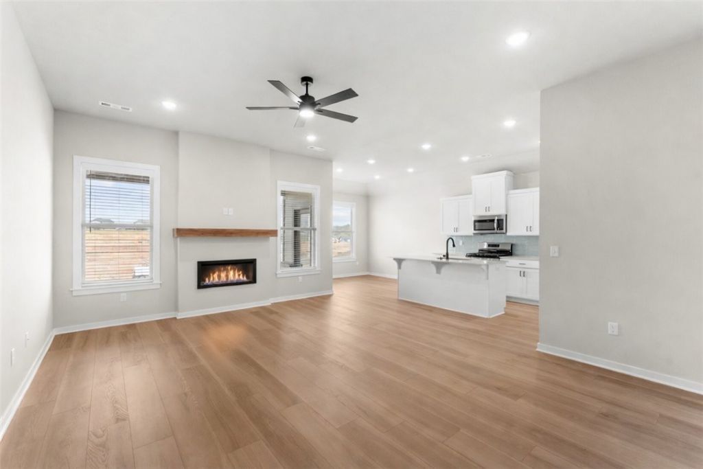 Discover your dream home in the sought-after Osage Hills neighborhood. Benton plan with garage on the left and South facing! 10 ft ceilings in the living/kitchen area, linear electric fireplace in the living, 1 level, LVP flooring throughout the main living areas and primary bedroom, quartz countertops and more. Chef's kitchen boasting frigidaire stainless steel appliances, gas range, pantry, quartz countertops, bar pull handles, large island and gorgeous backsplash. Luxurious primary bedroom features abundant natural light, while the spa-like primary bathroom offers a walk-in shower, double sinks, and spacious walk-in closets. Additional features include three large secondary bedrooms and a separate laundry room. Nestled on a generous lot with covered patio that overlooks the serene sodded, fully fenced backyard. Model home located at 6008 SW Coywolf St- Lot 122.
