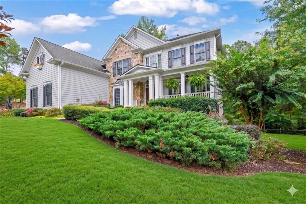 Welcome to 6010 Anchorage Quay?Lake Lanier living at its finest. Tucked within an exclusive 10-home enclave inside the gated St. Michaels Bay community, this beautifully renovated 6-bedroom, 4.5-bath estate offers an exceptional blend of elegance, comfort, and true lake lifestyle. Extensively updated in recent years, the home features new flooring, renovated bathrooms, and redesigned outdoor living spaces, including a new deck, patio, and professionally enhanced backyard. A rare highlight?your own deeded slip in the private 10-slip dock?is just a short walk or golf cart ride away, making lake days effortless. A welcoming rocking chair front porch leads into a light-filled foyer, where French doors open to a private office/den with custom built-ins. The formal dining room, accented with a bay window, crown molding, and wainscoting, is perfect for hosting gatherings. The dramatic two-story family room features a stacked-stone fireplace and a wall of windows that fill the space with natural light. The gourmet kitchen is designed for both everyday living and entertaining, showcasing a large granite island with wrap-around seating, double wall ovens, gas cooktop, walk-in pantry, coffee bar, and a bright breakfast room overlooking the backyard. A main-level guest suite with private bath offers flexibility for visitors or multi-generational living, along with a functional mudroom for everyday organization. Upstairs, an open balcony overlooks the main living area and leads to a spacious loft. The primary suite is a true retreat, featuring a tray ceiling, sitting area, and a fully remodeled spa-inspired bath with vaulted ceilings, frameless shower, soaking tub, dual granite vanities, and two walk-in closets, including a custom-designed dressing suite with center island. Three additional bedrooms complete the upper level, including a Jack-and-Jill bath and convenient upstairs laundry with sink and cabinetry. A fourth-level bonus space with half bath offers the perfect setting for a media room, game room, or private retreat. The fully finished terrace level is ideal for entertaining, featuring a granite wet bar with seating and wine fridge, recreation space, exercise room, guest bedroom, full bath, and additional living area. Step outside to enjoy the covered deck and patio overlooking a beautifully landscaped backyard, complete with lighting, fire pit, and natural privacy?backing to 10+ acres of protected Army Corps of Engineers land with direct access to Lake Lanier. Additional features include a three-car garage with EV charging station, extra parking pad, four HVAC systems (three recently replaced), whole-house water filtration, and a basement dehumidification system. Located in the East Forsyth school district, St. Michaels Bay offers resort-style amenities including tennis and pickleball courts, clubhouse, pool, playground, nature trails, and community dock. A rare opportunity to own a fully updated lake-access home with a deeded slip?schedule your private tour today.
