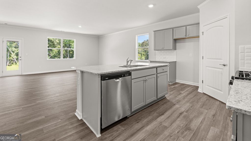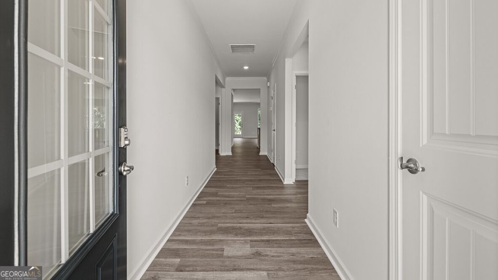 Welcome to 6016 Muirfield Point in Union City, GA! The convenient location of this community gives residents the opportunity to enjoy all that Union City and Fairburn have to offer. This 4-bedroom, 2-bathroom ranch floorplan home is sure to be a comfortable option for you and your family. Off the front porch, a long foyer with a coat closet greets you. Along the hallway you find 2 additional bedrooms and a full bathroom with tile. Both front rooms offer ample space with walk-in closets. Down the hallway further to the left is the third additional bedroom, the laundry room, and access to the 2-car garage. Stepping into the main living area, homeowners will enjoy the open layout. The updated kitchen includes quartz countertops, exquisitely crafted kitchen cabinets, stainless-steel appliances and more. A dining area sits right off the kitchen and living room with easy access to the covered back porch. All the main living areas boast durable RevWood flooring, for the active households. Tucked in the back left corner off the living room, homeowners can enjoy rest and relaxation in the primary suite. The primary suite offers a large walk-in closet, dual quartz vanity, and separate soaking tub and tiled walk-in shower. If the Cali plan at 6016 Muirfield Point in Union City, GA sounds like the right fit for your family, give us a call at South Wind to make this your home! Photos are representative in nature and do not depict actual home listed. Features may differ.