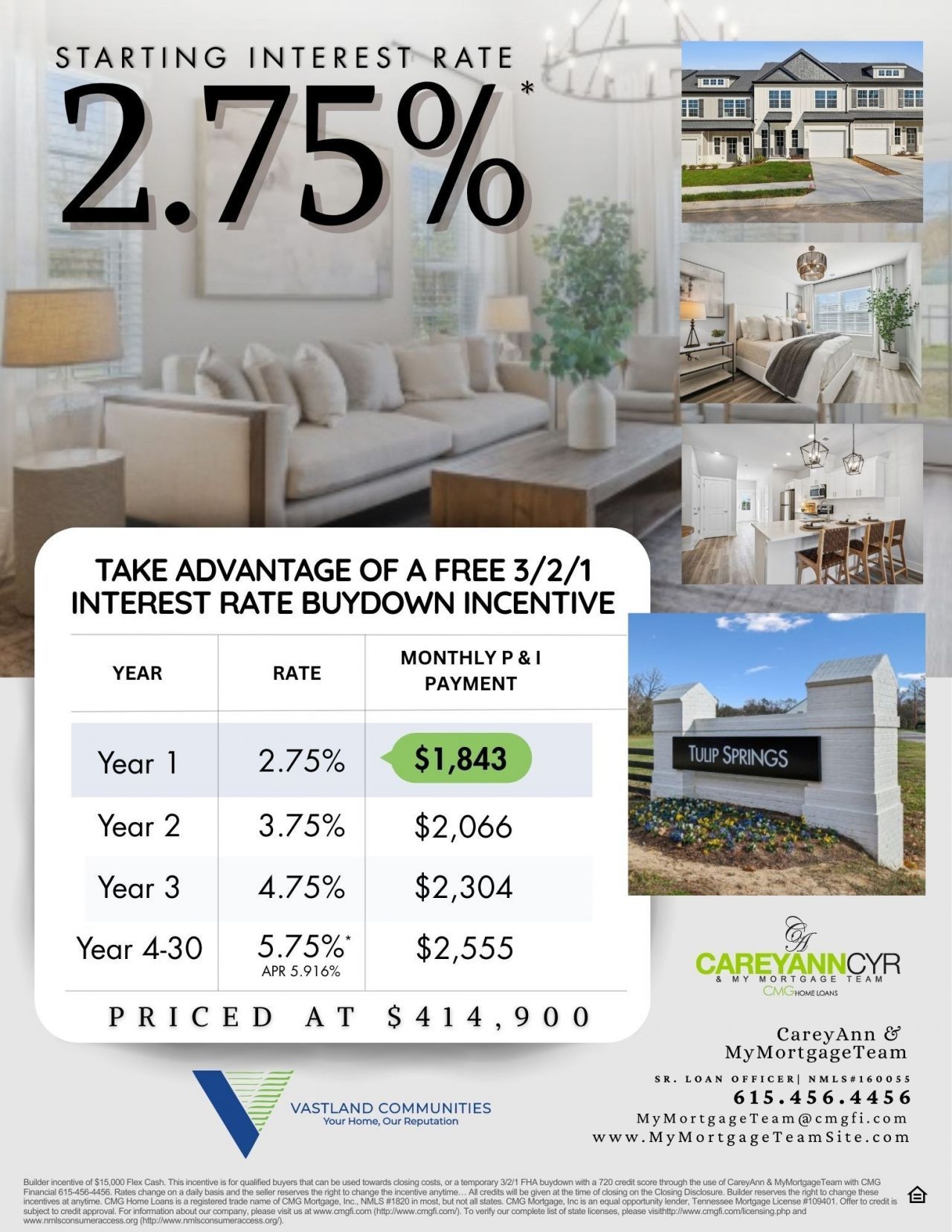 MOVE-IN Ready Homes Available. Tulip Springs is a new construction townhome community in Hermitage, TN. These stylish townhomes offer 3 bedrooms, 2.5 bathrooms, and 1,632 square feet of thoughtfully designed living space. Each home features a one-car garage and a spacious Primary Suite with a walk-in closet on the main level. The open-concept design flows beautifully into an incredible gourmet kitchen complete with extensive cabinet storage, a large island or peninsula, and a walk-in pantry.Additional highlights include a versatile flex space perfect for a home office, playroom, or guest area, extra walk-in storage, and a private patio. Best of all, these homes back up to a beautiful tree-lined preserve, providing enhanced privacy and peaceful natural views.This exclusive new construction townhome community is conveniently located just minutes from Nashville International Airport and a short drive to the heart of Music City. Residents enjoy easy access to major interstates, along with nearby restaurants, entertainment venues, and premier shopping destinations.Come experience vibrant & carefree living at these STUNNING homes designed by Vastland Communities! Walnut floor plan. MODEL HOME OPEN Wed-Sat 10am-5pm, Sun 1pm-5pm and Mon-Tues by appointment only. Contact: Vastland Communities Christy Frewin (c) 615-943-3781(o) 615-678-4480info@vastlandcommunities.com