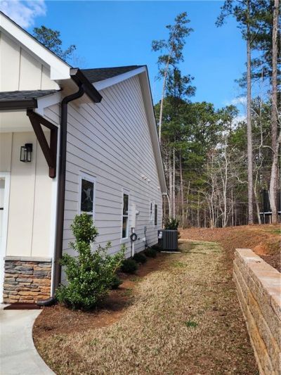 New Construction - Just a stones throw away from the Recreation Center and a few minutes the walking trail. This thoughtfully designed 4-bedroom, 3-bath residence offers the perfect blend of modern style, comfort, and functionality. A welcoming foyer opens to a spacious dining area and flows effortlessly into the heart of the home-the kitchen-featuring an oversized granite island, soft-close shaker cabinetry, stainless steel appliances, and a generous walk-in pantry. The adjacent living area is bathed in natural light from floor-to-ceiling windows and anchored by a cozy electric fireplace, creating an inviting space for everyday living and entertaining. Just off the family room, a tucked-away pocket office or reading nook offers a functional work-from-home option without disrupting the flow of the home. The main-level owner's suite is a true retreat with tray ceilings, a large walk-in closet, and a spa-inspired bath complete with dual vanities, soaking tub, and separate tiled shower. Step directly from the suite onto the covered patio-perfect for quiet mornings or relaxing evenings by the outdoor fireplace. Two additional bedrooms are located on the main level, while a private suite above the two-car garage provides the perfect setup for guests, extended stays, or a versatile bonus space, complete with its own full bath. Enjoy unparalleled privacy within the 24/7 gated community of Fairfield Plantation, located in Villa Rica, Georgia, just southwest of Atlanta. Residents enjoy an unmatched array of resort-style amenities, including championship golf, multiple lakes with fishing and skiing, a full-service marina, swimming pools, tennis and pickleball courts, walking trails, playgrounds, a community recreation center, and clubhouse dining-all within a secure, gated setting. The community also offers the convenience of an on-site voting precinct and the added peace of mind of a dedicated volunteer fire department. Don't miss this opportunity to own a brand-new home in one of the area's most sought-after communities, where comfort, lifestyle, and leisure come together beautifully