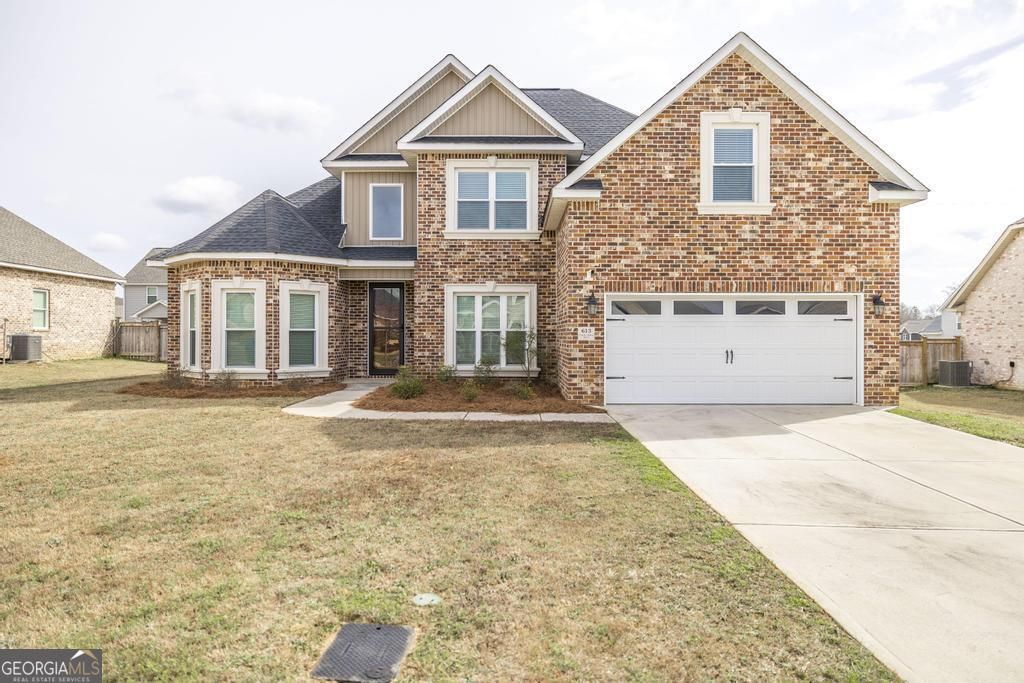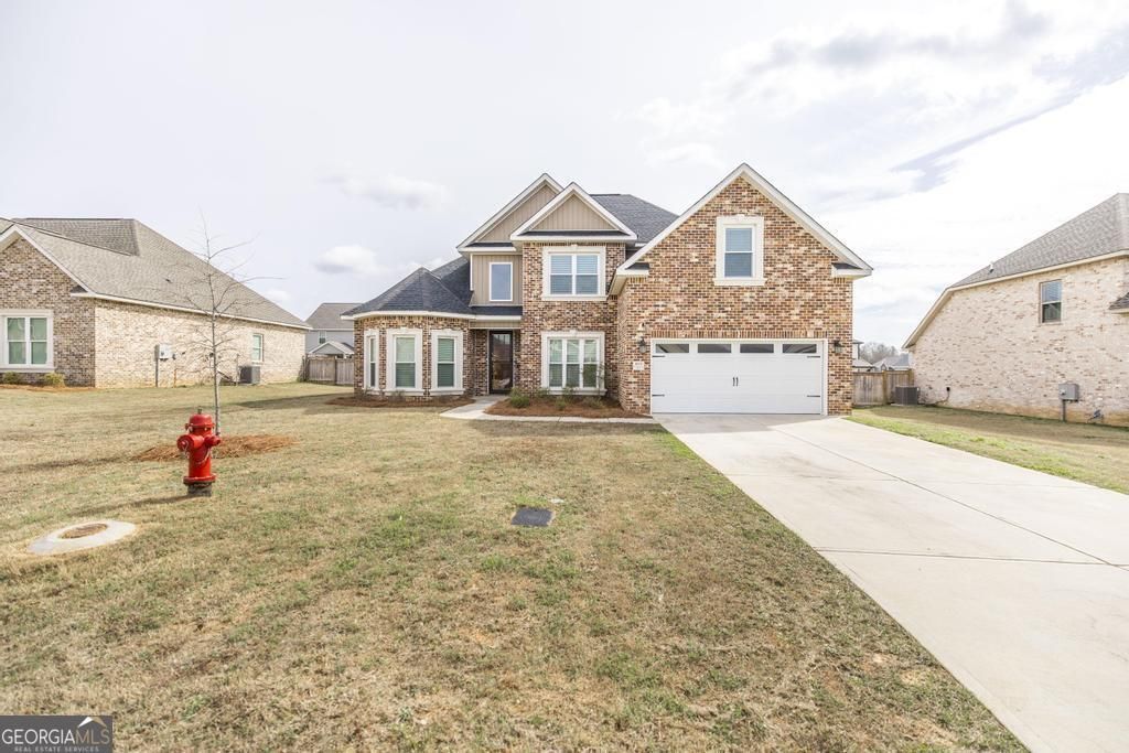 This home is where elegance, space, and craftsmanship come together in one unforgettable home, just minutes from Robins Air Force Base. From the moment you arrive, this stunning four-sides brick beauty stands out among the rest. Step inside and prepare to be impressed by soaring ceilings in both the grand foyer and the spacious family room, creating an open and airy atmosphere that feels luxurious yet inviting. The gas fireplace anchors the living space perfectly - ideal for cozy evenings or entertaining guests in style. Love to host? You'll appreciate the separate formal dining room, perfect for gatherings and special occasions. The kitchen is truly a showstopper, featuring stately cabinetry, a gorgeous brick accent wall, and a charming breakfast area that adds warmth and character you won't find in typical new construction. The covered back porch offers the perfect place to unwind, entertain, or enjoy peaceful Georgia evenings. The thoughtfully designed split floor plan provides privacy and flexibility. Two bedrooms are located on the main level, including a primary suite that is simply unforgettable. The primary bathroom will absolutely take your breath away - featuring an oversized walk-in shower that feels like a private spa retreat. Downstairs, the second bedroom enjoys its own privacy, making it ideal for guests or multi-generational living. Upstairs, you'll find generously sized bedrooms - and the middle guest bedroom is especially spacious. Every bedroom offers comfort and room to grow. Additional highlights include: * Walk-in laundry room * Two-car garage with MyQ smart system * Timeless four-side brick exterior * Exceptional curb appeal * Prime location near shopping, dining, and Robins AFB This home is not just beautiful - it's memorable. It's the one buyers will compare every other house to. Schedule your private showing today before someone else calls their agent and makes it theirs.