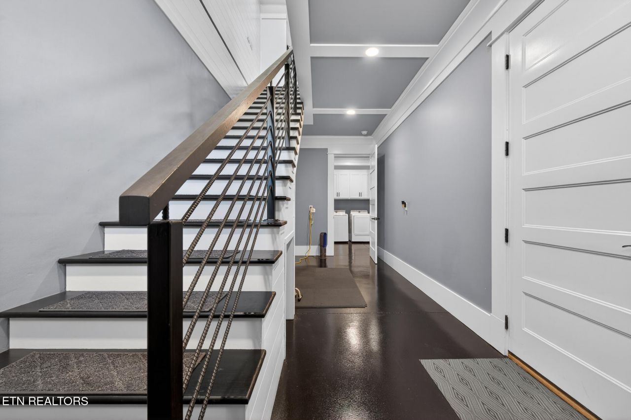 Stunning modern move-in ready home in Morristown -- 2 bed, 3 bath on a full acre. Thoughtfully designed and built with durability in mind (5/8'' fire-rated Sheetrock), this home blends clean contemporary finishes with practical features for everyday living. The main level showcases dark luxury vinyl plank flooring and dramatic 10-ft coffered ceilings in both the living room and primary suite. The chef-ready kitchen features crisp white cabinetry, white solid surface countertops, dark high-end stainless appliances, double built-in ovens, range hood, and a convenient coffee bar surrounded by cabinets, plus abundant storage throughout.The primary suite offers a spa-like ensuite with dual vanities, marble tile walk-in shower, built-in makeup vanity, walk-in closet, and smart mirrors in every bathroom. Built-ins, recessed lighting, and a hidden office nook add thoughtful touches. The partially finished basement continues the modern aesthetic with glossy concrete floors and includes a large laundry/utility room, full bath, and extra storage. An oversized three-car garage with large doors and dedicated workshop space is ideal for projects and hobbyists. Efficient systems include a hybrid heat pump and 24 SEER HVAC. Centrally located about 15 minutes from both Jefferson City and Morristown -- modern comfort, smart systems, and plenty of space on a serene one-acre lot. Schedule a tour today.