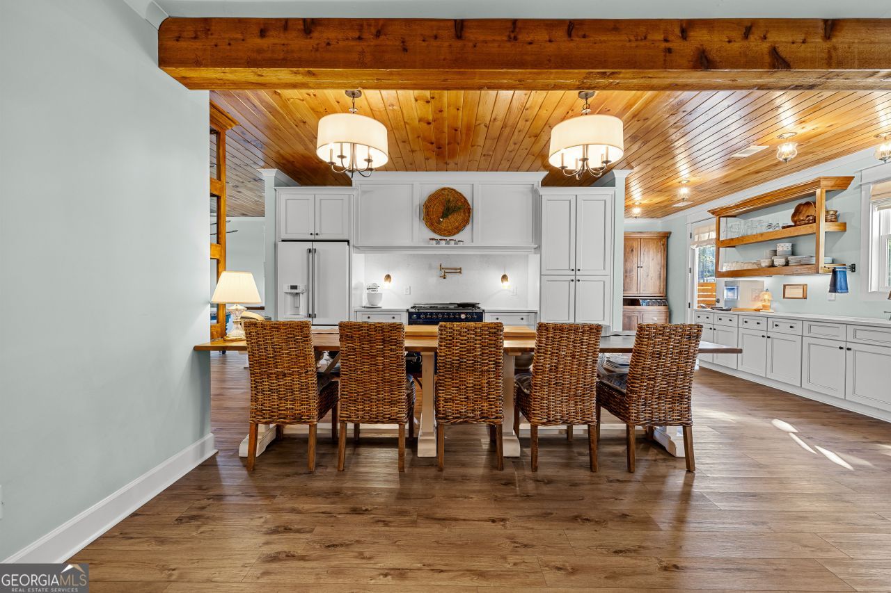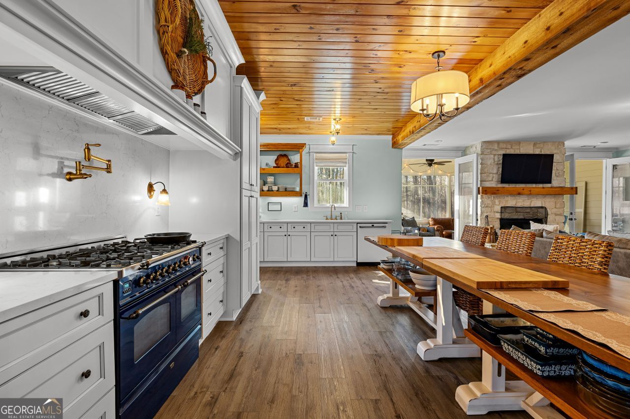 CUSTOM LUXURY FARMHOUSE on 3.37 Acres. Custom built in 2022, this luxury farmhouse offers over 6,200 square feet of beautifully designed living space with five bedrooms, five-and-a-half bathrooms, three bedrooms on the main level, a dedicated home office, and a four-car garage with approximately 800 square feet of finished space above it. Thoughtfully designed with flexibility in mind, this home combines classic farmhouse character with high-end finishes, abundant natural light, and a layout that works for real life. Inside, the home feels bright and open thanks to the abundance of windows throughout. Nine-foot ceilings and tongue-and-groove ceiling treatments in the kitchen and dining areas add warmth and texture without feeling heavy. The kitchen features open farmhouse-style shelving, a gas range, walk-in pantry, ample cabinetry, and two large prep tables in place of a traditional island, creating multiple gathering and work zones that feel casual, functional, and inviting. The primary suite on the main level feels like a true retreat, featuring an oversized shower with multiple shower heads, a striking copper freestanding tub, and custom closet built-ins. Two additional main-level bedrooms and a dedicated office provide excellent flexibility for guests, family, or working from home. The three-season porch adds living space and great views to the backyard. Upstairs are two more bedrooms along with a game room, media room, and bonus room, ideal for entertaining, hobbies, or creating separate living zones. One of the most unique features of the home is the finished space above the four-car garage. With a full bathroom, massive closet, tons of natural light, and a separate entrance from the garage, this approximately 800-square-foot space is perfect for an in-law suite, private office, studio, or future apartment conversion. Situated on a 3.37-acre corner lot, the property offers a large flat front yard and a wooded backyard that provides privacy without feeling closed in. There is no HOA, plenty of room for a future pool, and an existing well that can be used for irrigation. The home is on public water, septic, and has strong internet service. Located on Old Greenville Road in Fayetteville, you get a peaceful, country feel while still being roughly 10 minutes to Peachtree City grocery shopping, about 15 minutes to the Fayette Pavilion, and approximately 20 minutes to Trilith. Downtown Atlanta is less than an hour and Hartsfield Jackson Airport is a little over 30 minutes away. Zoned for Sarah Harp Minter Elementary, Whitewater Middle, and Whitewater High School. Additional features include insulated interior walls for enhanced sound control and energy efficiency, a tankless water heater, whole-home water filtration and softener system, and in-ceiling speakers in the game room, theater room, workout room, and office. The four-car garage is equipped with two Level 2 EV charging outlets, and the property includes an in-ground irrigation system that can be run off the existing well for efficient landscape watering.