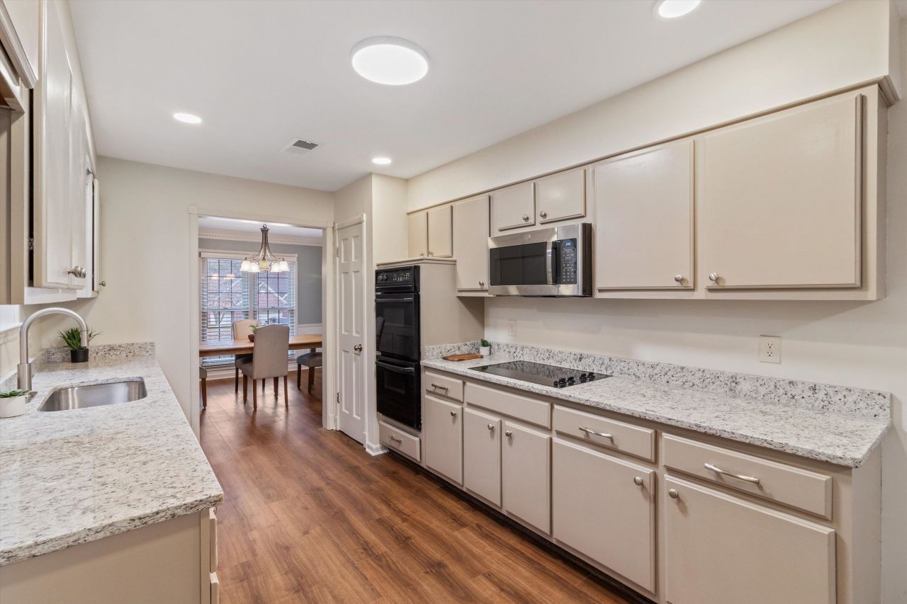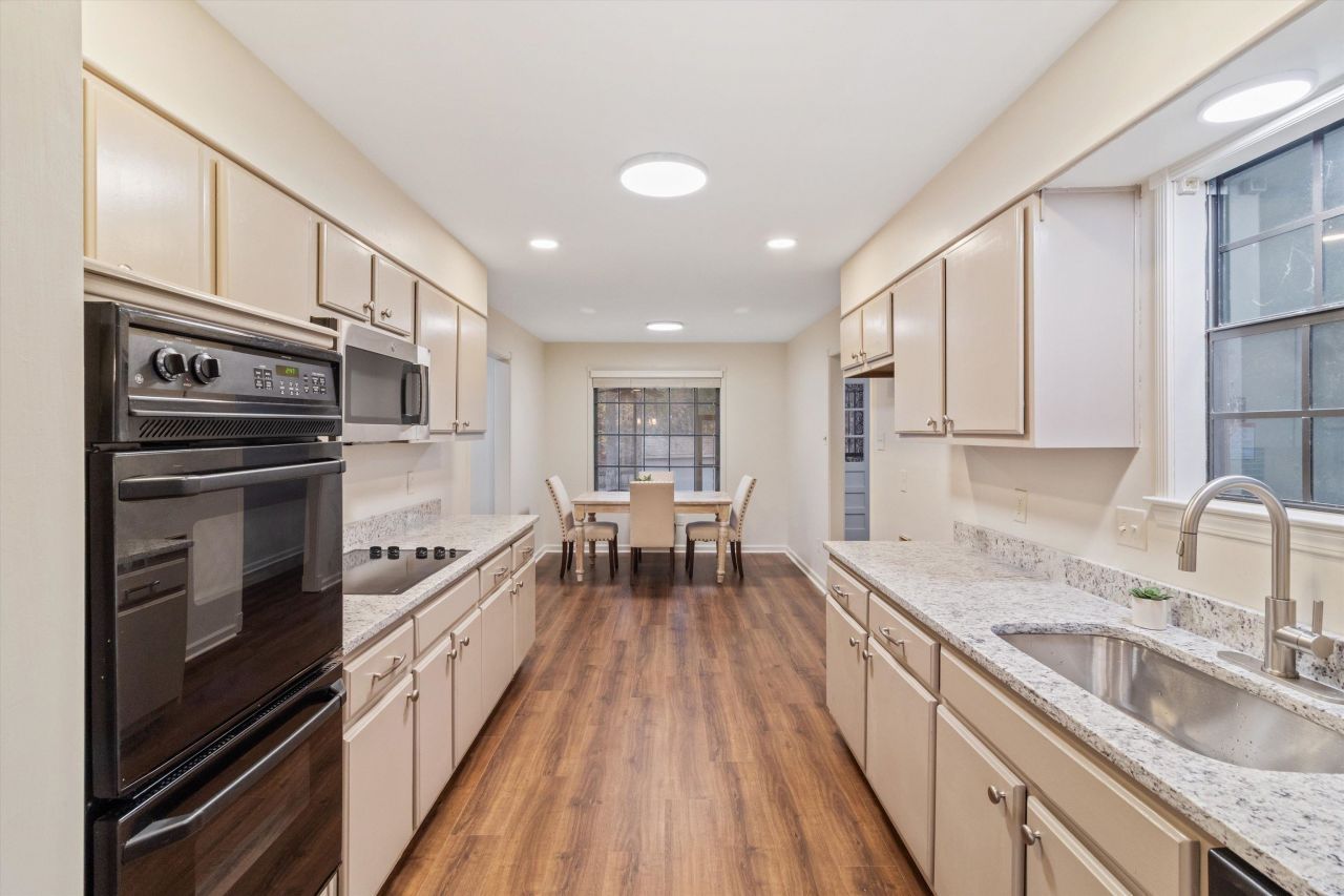 Four bedrooms Down!! Tucked back on a quiet street this Private One Story four bedroom/three full bath home is Renovated and Ready for you to move in! New Luxury vinyl floors, fresh paint, smooth ceilings, all new light fixtures plus upgraded canned lights throughout the home. New stone countertops and fixtures in the kitchen and all three bathrooms! New Cooktop and Built in Microwave. Kitchen has great cabinet space and a breakfast nook. Separate Laundry room. Great floorplan for living and entertaining with a formal dining room, separate office or living room and large inviting family room with a fireplace as the focal point. Walk out back to your private oasis with a screened in porch and expanded deck area. If you need Extra covered parking and storage this home has it with a bonus additional detached two car garage in addition to the attached 2 car garage and storage room.