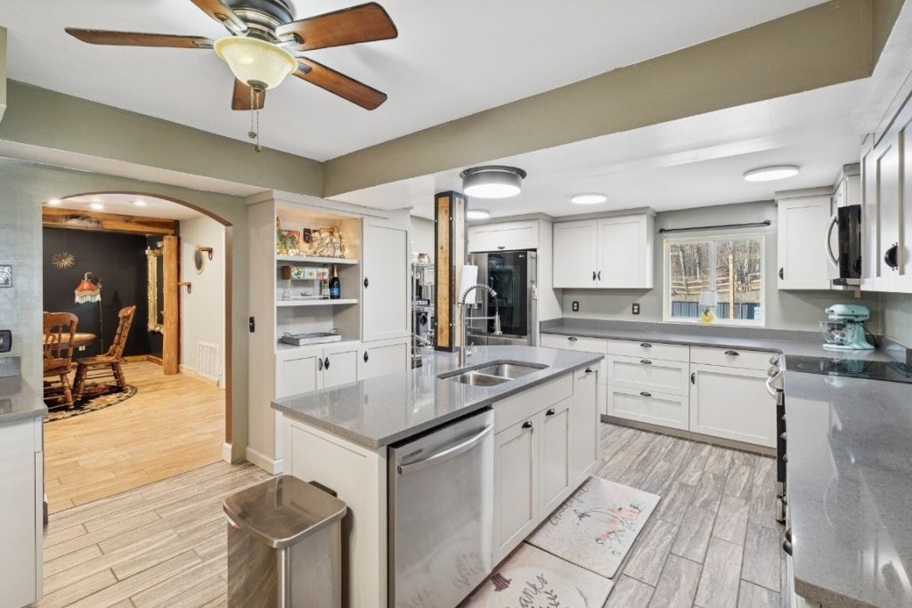 Beautifully renovated country home with new in-ground pool! Pool is fiberglass with chlorine and pump. Newly expanded and renovated gourmet kitchen with tons of counter and cabinet space. The perfect spot for entertaining! Dove gray cabinets, charcoal quartz, stainless appliances and lots of windows. Recently added primary suite wing with beautiful full bathroom. Dream craft room, study room or office on the main level. Laundry on main level and 2nd level. Craftsman interior stair case leads to two, 2nd floor bedrooms and bath. Extra spacious walk-in closet on the 2nd level. The third floor houses a loft and office that could be bedroom space. The rooms in this home are all generously sized. The walk-out basement was recently partially finished and is heated and cooled. Literally space for everyone. Wrap around porch on the front and side. Lots of space for outdoor furniture on the new patio around the pool. Plus a hot tub. New metal roof. New deck and pergola in the back. Hardyboard siding and coppertone gutters. Some windows added in the last 2 years. Tankless hot water heater 2 years plus a 50 gallon tank that is 2 years old. HVAC 1 is approx 5 years, HVAC 2 is approx 10 years. Meriwether Lewis FIBER high speed internet, ideal for working from home, gaming and streaming. 3 of the cutest storage sheds you have ever seen! Paint and decorate them for a creative touch. Large horse shoe driveway with tons of parking. Extra storage to the left of the home. Private wooded setting with fencing for animals. Serene aerated large stocked pond + platform deck and fountain that attract ducks and wildlife. If you would like to move in turn key for a mini farm, some of the animals can remain. Gated for privacy and security. Perfect mini-farm set in recessed terrain for beauty and seclusion. NOTE - there are lots of sweet animals on site that need to go up prior to showing, so please do not drive in to the property without an appointment. There are cameras and animals roaming.