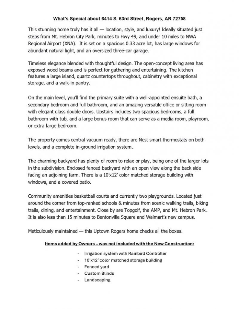 This single family home located at 6414 S 63rd Street, Rogers, AR 72758 is currently listed for sale by Crye-Leike Realtors - Bentonville, with an asking price of $718,000. This property was built in 2022 and has 4 bedrooms and 3 full baths with 2830 sq. ft. S 63rd Street is located in the Crescent View subdivision within the Rogers school district. Search Crescent View real estate on www.clcommercialrealestate.com today.