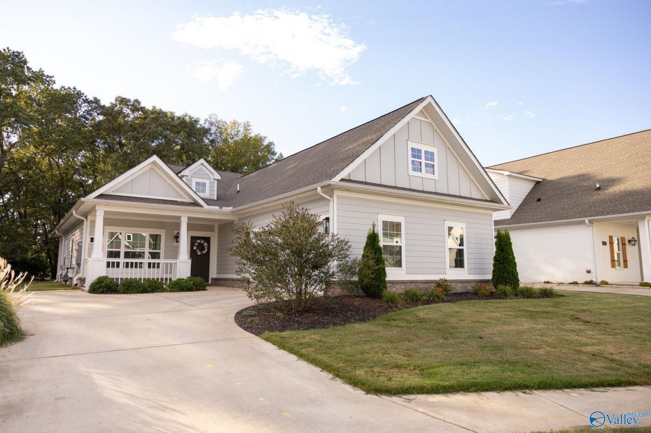 Last available home in this highly-desired neighborhood! Craftsman style with 3 bedrooms plus office! This open floor plan welcomes you with gas-flamed lanterns, vaulted ceilings, a shiplap fireplace with built-ins, and light hardwood floors. The spacious kitchen features a large island, coffee bar, gas cooktop, wall oven & microwave, and quartz counters throughout. Retreat to the owner's suite with trey ceiling, tiled shower, dual vanities, and 2 closets. Two bedrooms share a guest bath with double vanities, plus powder bath, drop zone, and more! Move in ready!! Easy access to Redstone Arsenal and Research Park **Offering 1% lender credit when using preferred lender**