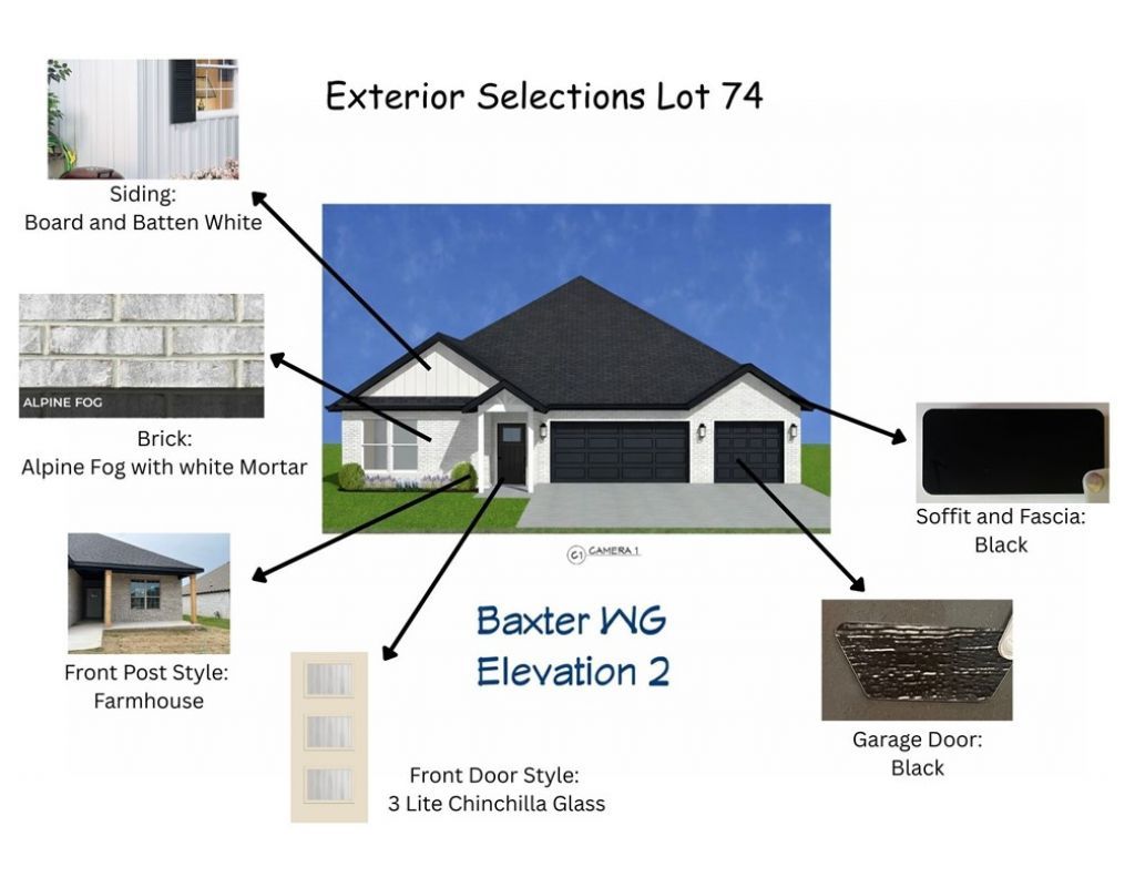 Experience the Baxter Plan at Walnut Grove.Act quickly ? select interior finishes may still be available for buyer customization. This thoughtfully designed single-level home offers four bedrooms, two baths, and a spacious three-car garage, delivering refined living with both comfort and sophistication.Inside, you'll find an expansive open-concept layout highlighted by soaring vaulted ceilings with elegant beam detailing and a striking gas log fireplace. The gourmet kitchen features custom soft-close cabinetry, a gas range with a fully vented hood, built-in microwave, and walk-in pantry ? blending beauty and function seamlessly.The primary suite serves as a private retreat, complete with a spacious walk-in shower and dual vanity offering abundant storage.Outdoors, the covered back deck is equipped with gas and internet connections, creating the perfect setting for elevated entertaining and effortless relaxation.Blinds, gutters, and wood privacy fence included.
