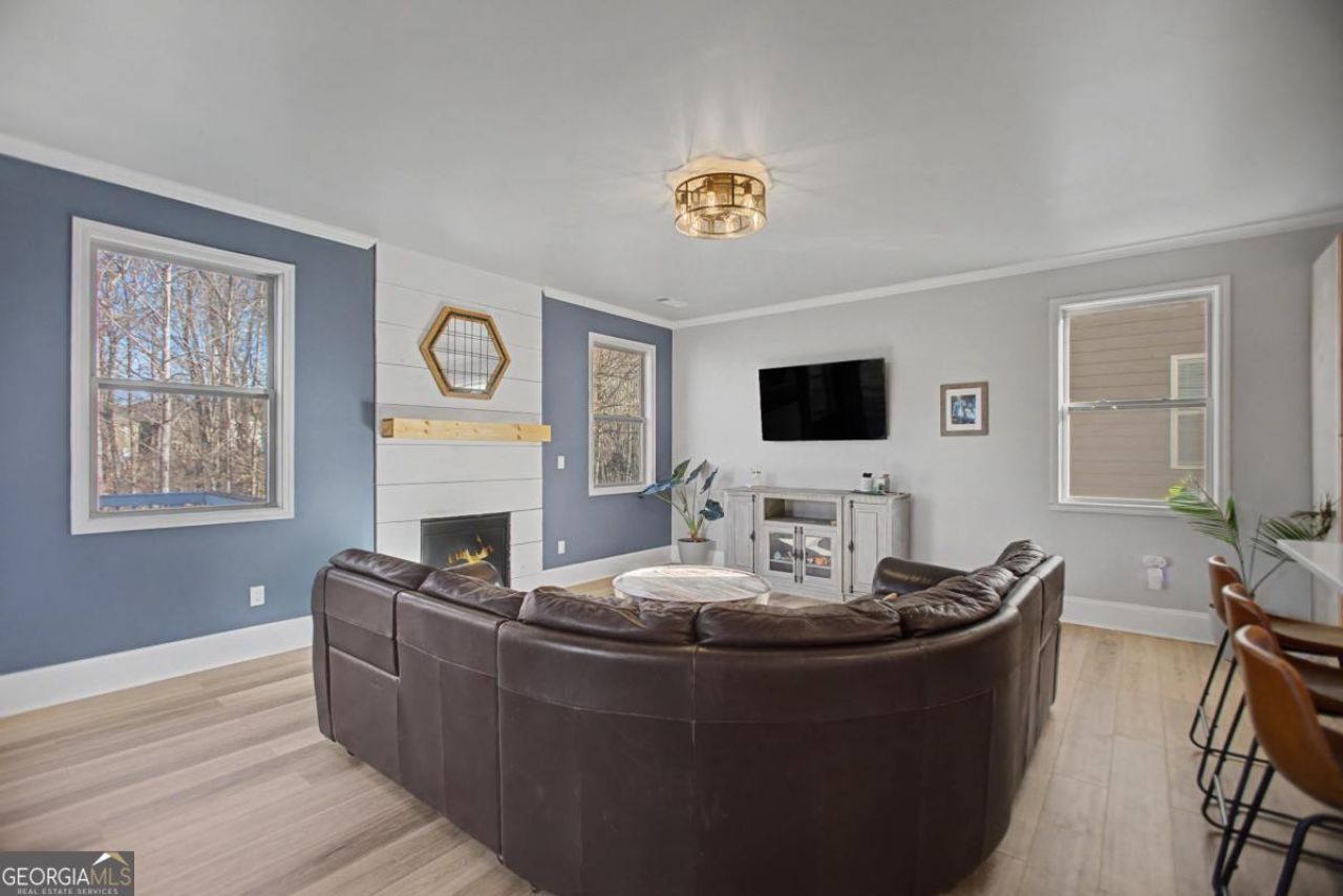 Welcome to this beautifully updated 3-bedroom, 2.5-bath home with an unfinished basement, offering modern comfort and resort-style living. The open-concept main level features a fully redesigned chef's kitchen and family room (2024) with stainless appliances, custom countertops, new cabinetry, backsplash, and stylish LVP flooring throughout. Enjoy an oversized deck overlooking a fully fenced, private wooded backyard - perfect for relaxing or entertaining. Upstairs, the spacious primary suite includes a walk-in closet and spa-like bath with dual vanities and a soaking tub. Two additional bedrooms, a full bath, and a flexible loft provide space for guests, work, or play. Recent updates include modern fixtures, ceiling fans, exterior paint (2023), radon venting, landscape lighting, and fresh interior touch-ups. Located in Sterling on the Lake, residents enjoy lake access, kayaking, pools, tennis and pickleball courts, trails, playgrounds, a fitness center, and clubhouse amenities. Conveniently close to Lake Lanier and top-rated schools in Flowery Branch, this home offers the perfect blend of convenience, community, and tranquility. Schedule your showing today!