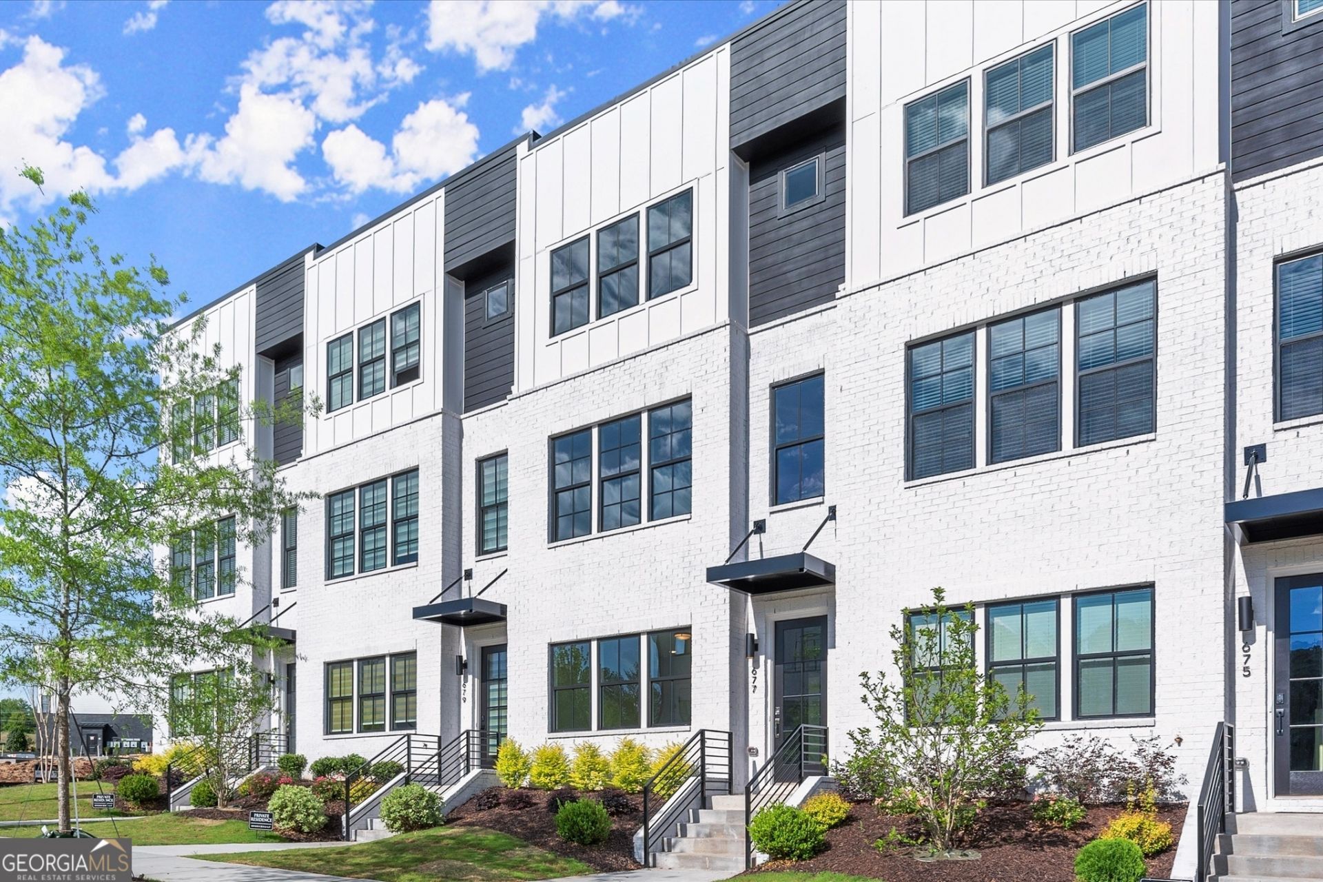 Introducing The Adeline - a contemporary townhome offering 2,160 sq. ft. across three levels with 4 bedrooms and 3.5 baths. Professionally designed and richly upgraded, this home features elevated finishes and thoughtful enhancements throughout, offering a rare opportunity to own one of the most highly appointed residences in the community. The main level includes a private guest suite with full bath and access to the two-car garage. Upstairs, the open-concept living area showcases 10-foot ceilings, a spacious great room, and a chef's kitchen with KitchenAid stainless steel appliances, quartz countertops, and an oversized island. The top floor features a serene primary suite with a walk-in closet and spa-inspired bath, plus two additional bedrooms, a full bath, and laundry. Located in The Gathering, just minutes from Downtown Alpharetta, Avalon, and the Alpha Loop, residents enjoy a community garden, firepit, and dog park. A future mixed-use development beginning in 2026 will bring restaurants, boutique shops, and entertainment right to the neighborhood-delivering everyday convenience just steps from home. Agent on-site Mon, Tues, Thurs-Sat (10-6) and Wed & Sun (1-6).