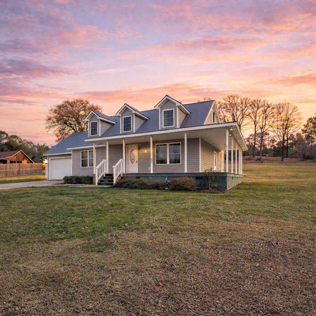This perfect country retreat in Bridgeport is a Cape Cod home with 3 spacious bedrooms and 2.5 bathrooms. The primary bedroom, conveniently located on the main floor, features a generous his-and-hers walk-in closet with ample storage, a double-bowl vanity, a nice tub-and-shower combo, tile flooring, and plenty of linen closet space. The large upstairs bedrooms boast plenty of room and expansive closets, providing ample storage space, and share a beautifully appointed bathroom with a jetted tub and seating area. The galley-style kitchen, complete with an eat-in tile bar, showcases extensive exposed beams, custom cabinetry, and high-end black appliances. Attached is a two-car garage with additional storage, and a three-car detached garage with plumbing and a toilet, offering future potential as a mother-in-law suite, man cave, or she-shed loft apartment. The expansive porch provides the perfect setting to unwind in the hot tub or take in the breathtaking mountain views. Strategically located just 10 minutes from shopping and great restaurants, 30 minutes from downtown Chattanooga, 45 minutes from Huntsville, and 15 minutes from Scottsboro, Alabama, this property offers an ideal balance of seclusion and accessibility, set on a level 3.25-acre flat yard.