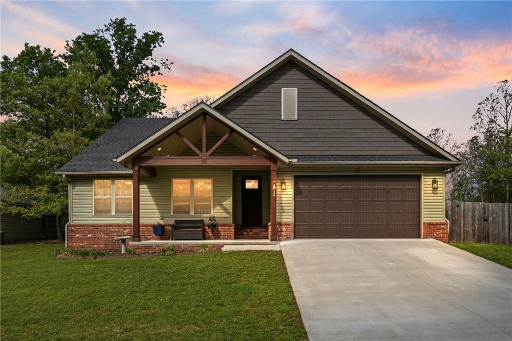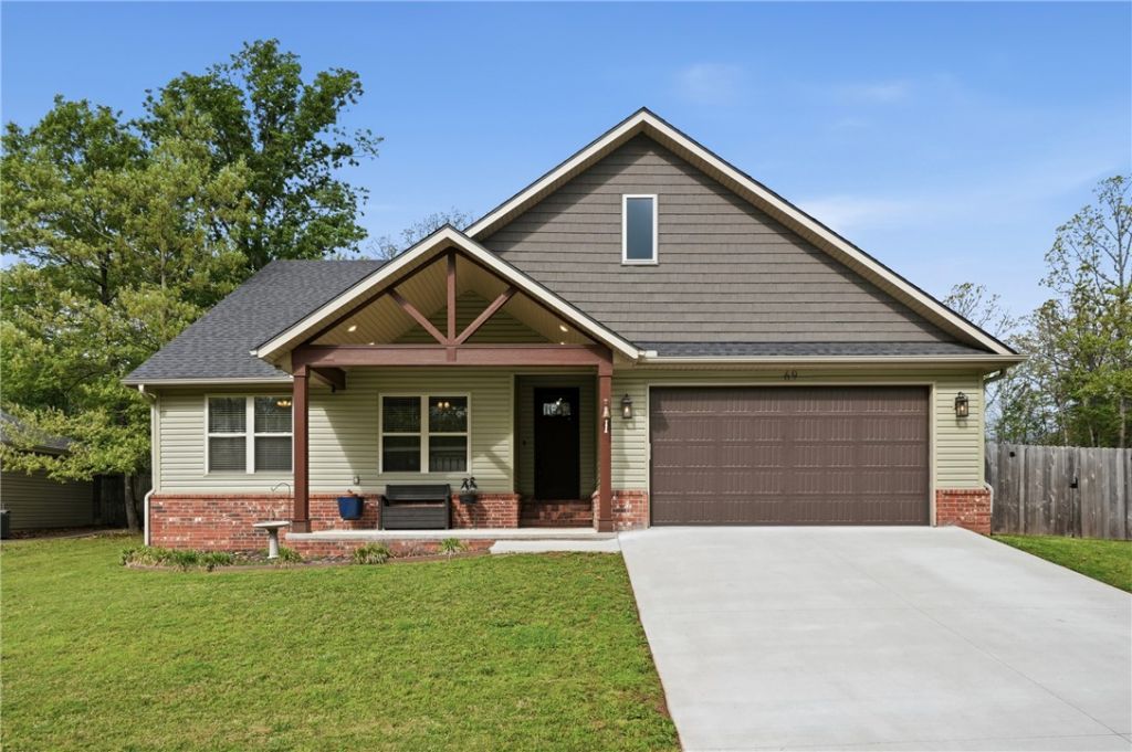 Experience the perfect blend of comfort and craftsmanship in this beautifully designed custom Craftsman home built in 2023, ideally located just 7 minutes from I-49 for easy access to all Northwest Arkansas has to offer. Inside, you'll find a open-concept layout with a desirable split floor plan, creating both functionality and privacy. The living area is the true heart of the home?featuring a stunning vaulted ceiling with stained wood beams and a cozy fireplace that sets the tone for relaxing evenings or entertaining guests. The kitchen and living spaces flow seamlessly, and the home comes move-in ready with included appliances and window blinds already in place. Located just minutes from Lake Loch Lomond, Highlands Golf Course, and the Scotsdale Activity Center, this home offers not only comfort but a lifestyle surrounded by recreation, nature, and community.