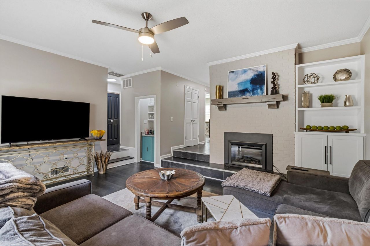 Beautiful neighborhood convenient to everything East Memphis and Germantown have to offer!! Freshly Renovated Townhome tucked in the back of sought after community with Pool and Clubhouse. End unit with lots of privacy!! Renovated kitchen 2024 : new appliances, marble backsplash, plenty of cabinetry and stone countertops. New Privacy Blinds both glass doors, new awning front door. New windows installed March of 2024. Hardwood floors refinished June 2024 and all bathrooms updated. Brand New Carpet upstairs. Custom shelving added in all closets, laundry area and the wet bar. All New hardwood staircase with iron accents. Workshop with electricity, 2 car garage with lots of cabinets for wonderful storage, large front and back patios to enjoy the outdoors! New Security system with cameras. All New light fixtures and ceiling fans. Too many updates to list here!! Neighborhood pool and clubhouse.