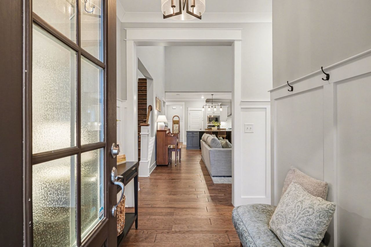The heart of this home is the spacious kitchen designed for gathering-featuring top level granite countertops, an oversized island perfect for homework, baking, casual meals or entertaining. This kitchen truly brings everyone together. The dining room offers a charming built in sideboard, providing extra storage for serving pieces, games or holiday essentials. Three bedrooms located on the main floor, everyone stays connected while still enjoying their own space. Upstairs, a private bedroom, full bath, large bonus room and walk in storage -perfect for a teen retreat, guest suite, playroom or home office. Designed for indoor outdoor living, the accordion doors open to the fully screened porch and extend your living space. Large private backyard is fenced in. Thoughtful details include built in speakers, stylish wood accent walls in the bedrooms, a drop zone and a beautifully finished tiled laundry room with cabinetry.This home blends high end finishes with practical design, creating a warm, open and airy space that truly lives beautifully.