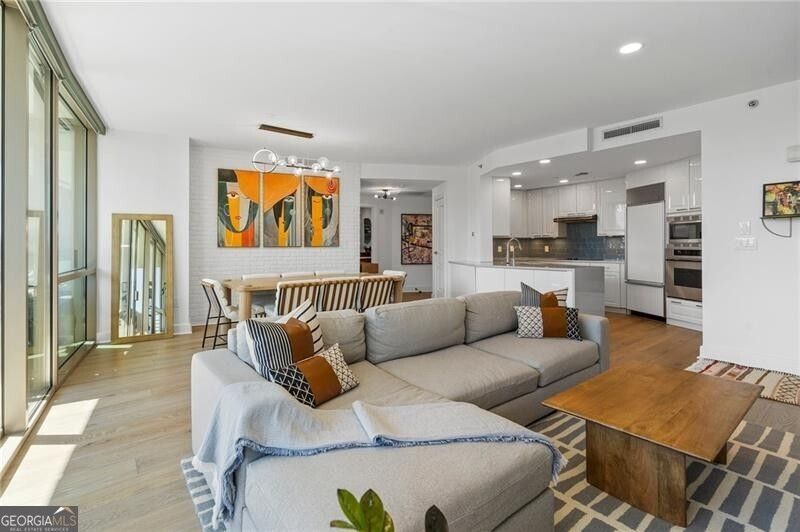 NEW LISTING! A must-see, FULLY RENOVATED residence in Park Regency, located in the heart of Buckhead. Residence 1503 offers two bedrooms and two and a half baths with a thoughtfully designed, open living layout ideal for both everyday living and entertaining. The expansive balcony provides exceptional outdoor space and enhances the light-filled interior. The residence has been extensively updated with new countertops, sinks, fixtures, flooring, and designer lighting throughout, along with motorized shades, custom closets, and completely renovated bathrooms. The chef's kitchen features a Sub-Zero refrigerator and a walk-in pantry, delivering both luxury and functionality. The primary suite is a true retreat, featuring a large walk-in closet and a completely renovated marble bath with corner Buckhead views. The guest room features ensuite bath, jaw dropping views and large closet. Adjacent to the Primary Suite, the residence also features a private flex space perfect for a yoga room, den or office space. Park Regency offers state-of-the-art amenities, including a fitness center w/ steam room & sauna, valet service, 24/7 concierge, doggie park, 2 guest suites for out of town guests, rooftop lounge and elegant club room. Unit includes 2 parking spaces, private wine storage and storage room. This exceptional offering is move-in ready and will not last.