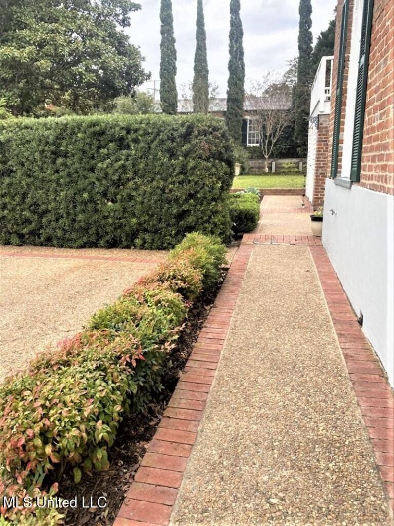 BEAUTIFUL BRICK GREEK REVIVAL STYLE HOME WITH GUEST HOUSE LOCATED IN THE HEART OF DOWNTOWN NATCHEZ. The ideal location with close proximity to restaurants, shopping, walking trails & the Mississippi River. The main house has 3 bedrooms, 2.5 baths with approximately 2803 square feet. This home has many amenities which include granite countertops in the kitchen, double ovens, gas stove top & built in microwave. Other features are built ins, high ceilings, recessed lighting, detailed wood work & a tankless water heater. Beautiful dining/ living room & a large den with built ins. Outstanding foyer area with a gorgeous staircase. The primary bath has a walk in closet, jet tub & separate shower. Spacious bedrooms with great closet space. The two story guest house has one bedroom (could be two) with a full bath & a balcony that overlooks the carefully maintained gardens listed in the SMITHSONIAN GARDENS. The guest house has approximately 675 square feet & has potential for many uses. The exterior has many nice features as off street parking, open patio with a canopy & fountain & exquisite landscaping.