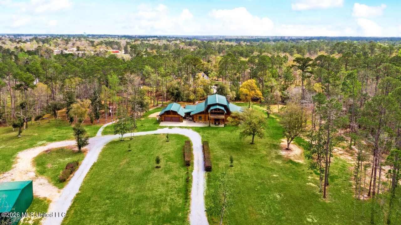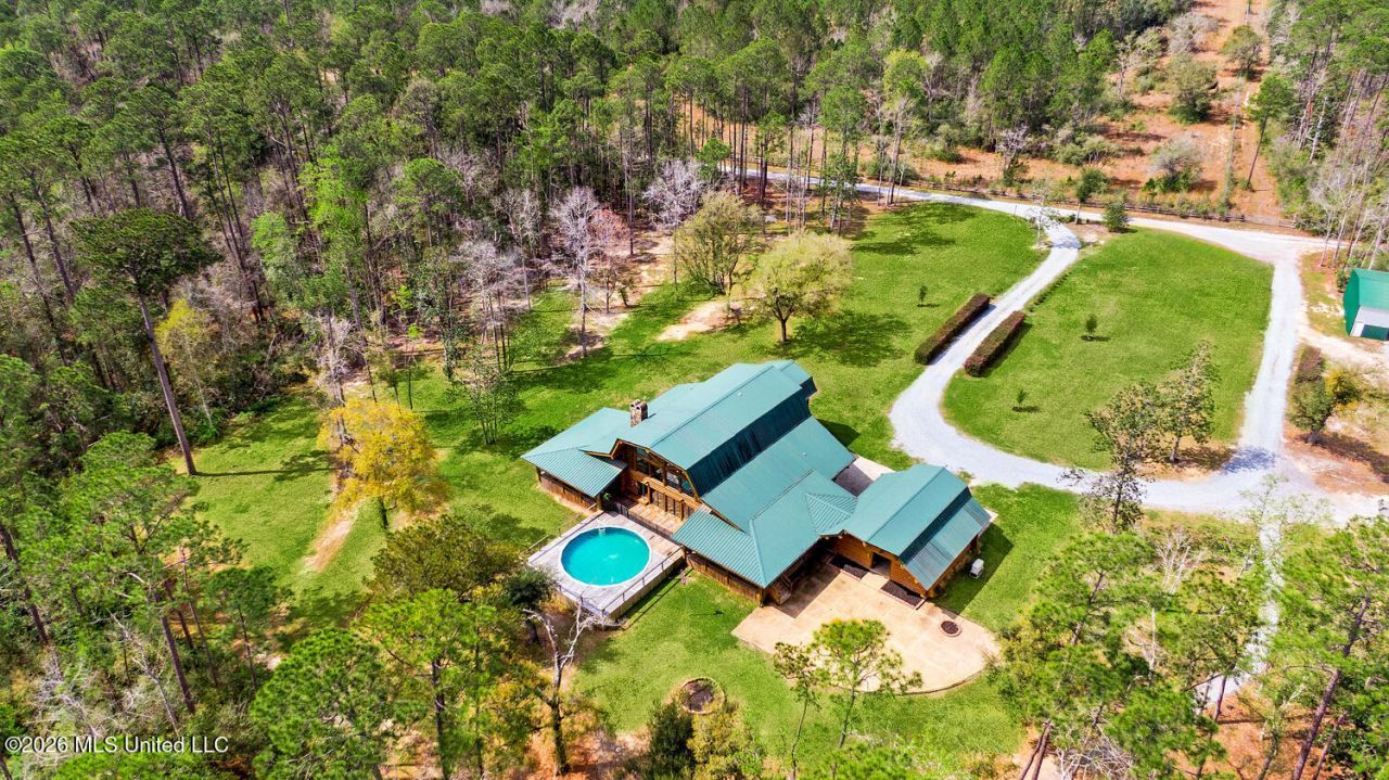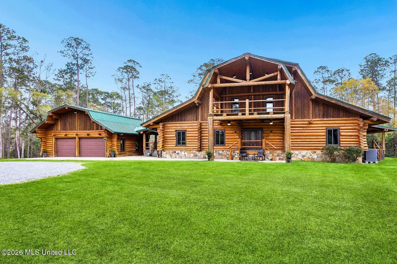 OPEN SUNDAY: 1:00 TO 3:00pm. Your dream of owning a country estate is about to become a reality. This 18-acre homestead features a 4,000 square foot log cabin home with a 2-car garage, swimming pool, a barn, and a dock. Imagine living the dream of wide-open spaces with privacy and tranquility surrounded by land that is perfect for everyday living or weekend getaways just one hour from Hattiesburg or New Orleans.An open floor plan features views from every room. The expansive kitchen includes two islands, a coffee station, a walk-in pantry, and adjacent bar - simply perfect for entertaining! Three dedicated bedrooms plus two flex spaces present many opportunities: bunk room, playroom, office?If you have toys to store - Big Boy Toys like boats, RVs, jet skis, tractors, golf carts, and 4-Wheelers -- the 2,400 s.f. barn can accommodate it all. It's a short stroll to your dock on Bayou Talla with easy access to the Jourdan River and the Bay of St. Louis. Upgrades include whole-house generator, new windows, upgraded metal roof, new HVAC and duct work, landscaping and forestry management.Since there are no covenants or building restrictions on this property, you will have the flexibility to build additional homes as your family grows. Can you visualize such a scenario where family and friends all gather for long holidays - together but with some distance.