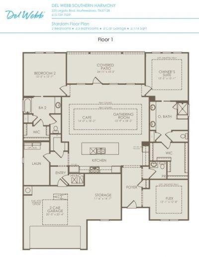 Discover the Stardom floor plan at Del Webb Southern Harmony-where thoughtful design meets exceptional 55+ Active Adult living. This to?be?built Stardom floor plan features 2 bedrooms, 2 bathrooms, and a flex room that can be converted into a private office with optional French doors.The Stardom is truly an entertainer's delight, offering a massive gathering room and spacious dining area that create an inviting, open layout. Add the optional fireplace for a warm and elevated focal point. The guest bedroom acts as a true second owner's suite with an oversized ensuite bathroom and walk?in closet-ideal for dual?primary living or hosting guests who enjoy added privacy.Outdoor living is a highlight, with a generous covered patio that connects seamlessly to the gathering room. Buyers can enhance this space with an optional backyard gas fireplace for a cozy retreat. For additional living area, the optional second floor adds 770 sq. ft. including a bedroom, bathroom, loft, and extra storage.Buyers will appreciate the 2?car garage with an included 14' x 11' storage space, perfect for hobbies, a workshop, or seasonal storage. For even more flexibility, the storage area can be converted into a true 3?car garage, ideal for a third vehicle or golf cart. Join us for the Clubhouse Grand Opening Celebration on Friday, February 20th, from 11 AM-2 PM! Enjoy live music, food, and guided tours showcasing the brand?new clubhouse and the exceptional amenities offered throughout Southern Harmony.Experience elevated living, flexible design, and a vibrant community lifestyle at Del Webb Southern Harmony.