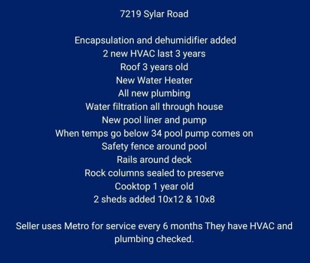 Don't miss out on this home, with lots to offer. Bring your chickens to live on this 2 acre homestead with 2 storage buildings and close to I75 and Cambridge square.In 5 or less years these new things have been added... new roof, 2 HVAC, pool liner, pump, cleaner, hot water heater. The crawl space is encapsulated and includes a dehumidifier. All plumbing has been replaced and has a water filtration system through out and more. Come see this 4 bedroom 2.5 bath home with 2650 sq ft today.