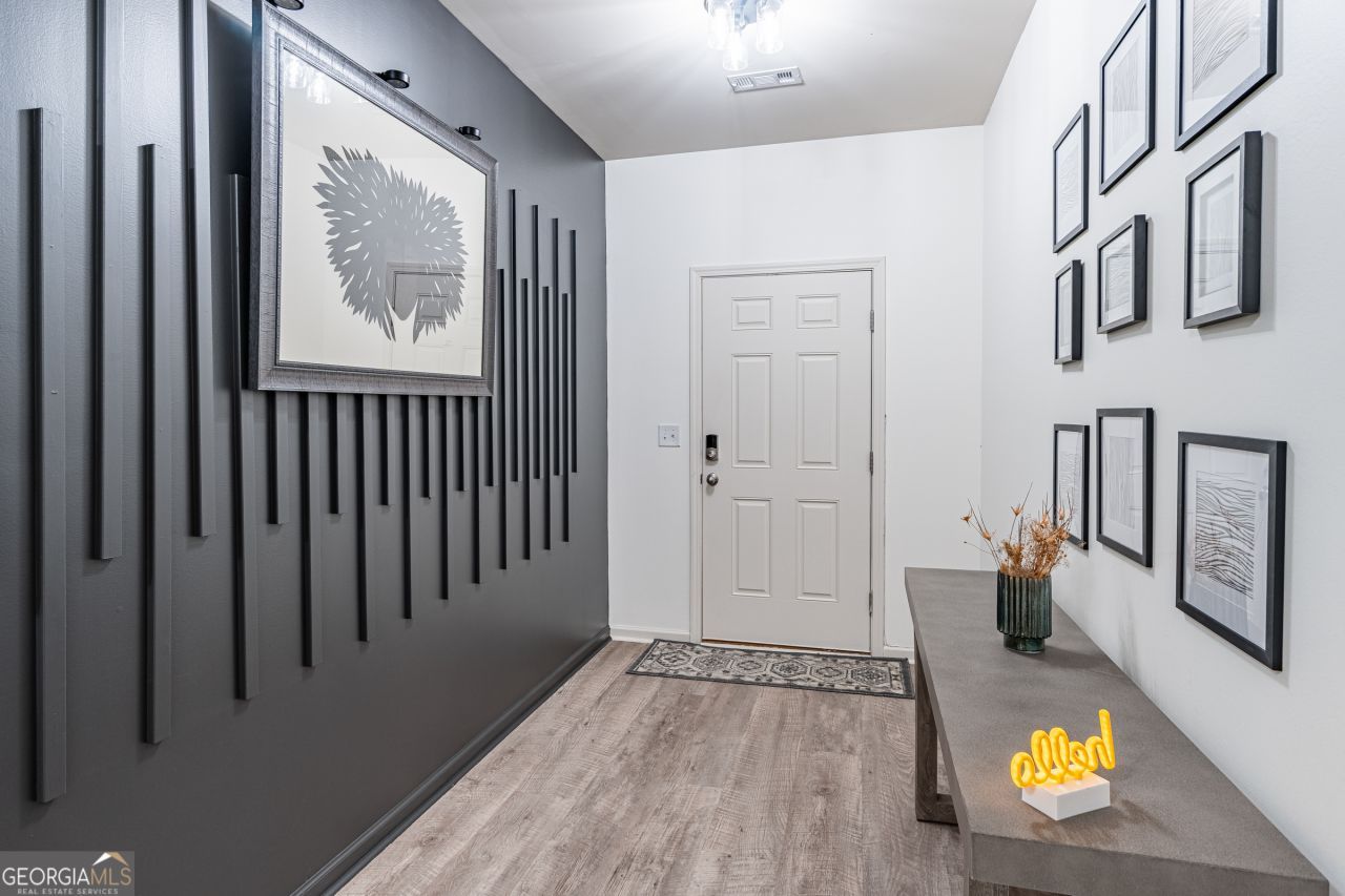 Modern elegance meets peace of mind! This impeccably maintained home features a New Roof (2024) and fresh interior/exterior trim paint. The carpet-free interior boasts Luxury Vinyl Plank (LVP) flooring throughout, designer accent walls, and upgraded lighting, including recessed and pendant fixtures. The gourmet kitchen is outfitted with new granite countertops, a premium sink/faucet, and a custom-shelved pantry. Modern conveniences abound with smart home technology (thermostat and MyQ garage), plus hidden electrical sockets behind all TV mounts for a sleek, wire-free look. Step outside to a private outdoor oasis featuring an extended concrete patio, custom pergola, and professional landscaping-complete with privacy trees, hedges, and rose bushes. This home combines high-end structural updates with model-home finishes. A must-see! For special lender incentives please reach out to Shaun Graham with Southeast Mortgage - Shaun.Graham@SoutheastMortgage.com - 678-770-6697