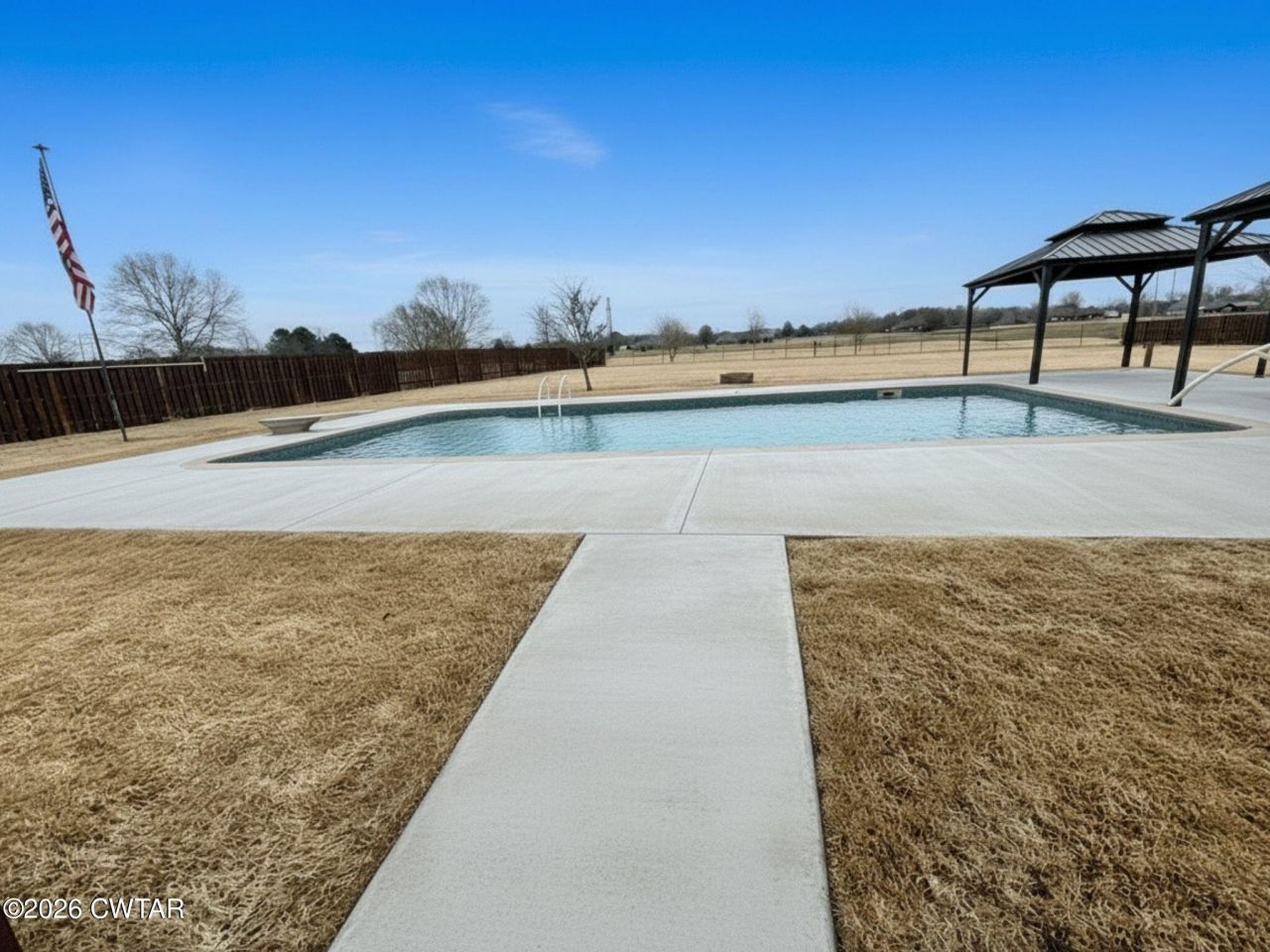 Step into your own private outdoor retreat on just under 4 beautifully maintained acres. The backyard features approx. 150' x 200' of fenced area designed for entertaining and everyday enjoyment, featuring an in ground 20x40 saltwater swimming pool installed in Fall 2024 with expanded concrete decking for generous gathering space. The custom concrete includes four built in umbrella holders, creating flexible shaded seating areas around the pool. Two gazebos overlook the pool area and are equipped with eight power outlets, making them ideal for outdoor dining, game days, evening lighting, or hosting events. The expansive yard offers room to play, garden, or simply enjoy the privacy and open space. Inside, the home offers 5 bedrooms and 4 full baths with tile flooring throughout. The kitchen provides abundant cabinetry, a double pantry, an eat in area, and a separate dining room. Just off the primary suite is a heated and cooled enclosed patio/sunroom for year round relaxation. The insulated garage includes a new HVAC unit and a storm shelter/safe room. A new roof was installed in December 2025 for added peace of mind. If outdoor living is at the top of your list, this property delivers space, function, and resort style amenities all in one. The information provided in this listing is deemed to be accurate and reliable, but it is not guaranteed by the broker or agent.