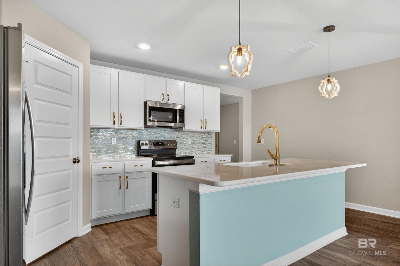 This Gold fortified 4 - bedroom, 2 bathroom home is situated in Foley, AL, just a short drive from the stunning white -sand beaches. Step inside to discover a stylish and functional open-concept layout featuring stainless steel appliances, marble countertops, and a custom tile backsplash in the kitchen perfect for cooking and entertaining. Both bathrooms also showcase marble countertops. The primary bathroom offer double vanities, a separate tub and walk in shower. Easy to show!! Schedule your appointment today. Buyer to verify all information during due diligence.