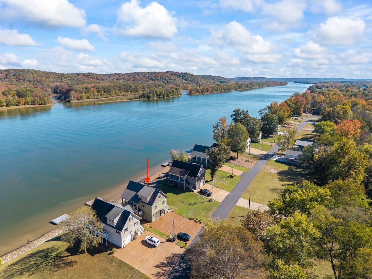 Dream weekend living awaits at this fully furnished Tennessee River property in the privately gated community on Miracle Drive in Decaturville, TN. Designed for comfort and style, this custom-built home includes high-end furnishings and all appliances, making it truly move-in ready. The property also offers outstanding storage with a large basement garage and workshop, plus quick access to Interstate 40 just minutes away. Inside, you'll immediately notice the abundance of natural light and beautiful water views. The open-concept living and dining areas span the full width of the home and are highlighted by a dramatic wall of tall windows overlooking the Tennessee River. Hardwood and tile flooring run throughout with absolutely no carpet. The living room features a stunning stone fireplace with gas logs, beam ceiling treatments, and built-in surround sound.The kitchen is thoughtfully designed with premium custom cabinetry, granite countertops, and stainless appliances including gas cooktop, built-in wall oven and microwave, refrigerator, and dishwasher. Washer and dryer are included. A breakfast bar adds additional seating and function.This custom home offers three bedrooms and two and a half baths, with one bedroom on the main level and two upstairs. The primary suite is privately positioned at the rear with its own balcony overlooking the water, double vanity, large walk-in shower, and spacious walk-in closet. The half bath is located in the basement garage/workshop area. Outdoor living shines with a 37-foot-wide wraparound deck that includes the grill, a large covered patio below, and a private dock for direct Tennessee River access. A Generac whole-home generator, 34x24 garage/workshop with 9-foot clearance, and abundant basement storage complete the package. Just bring your boat and your bathing suit.