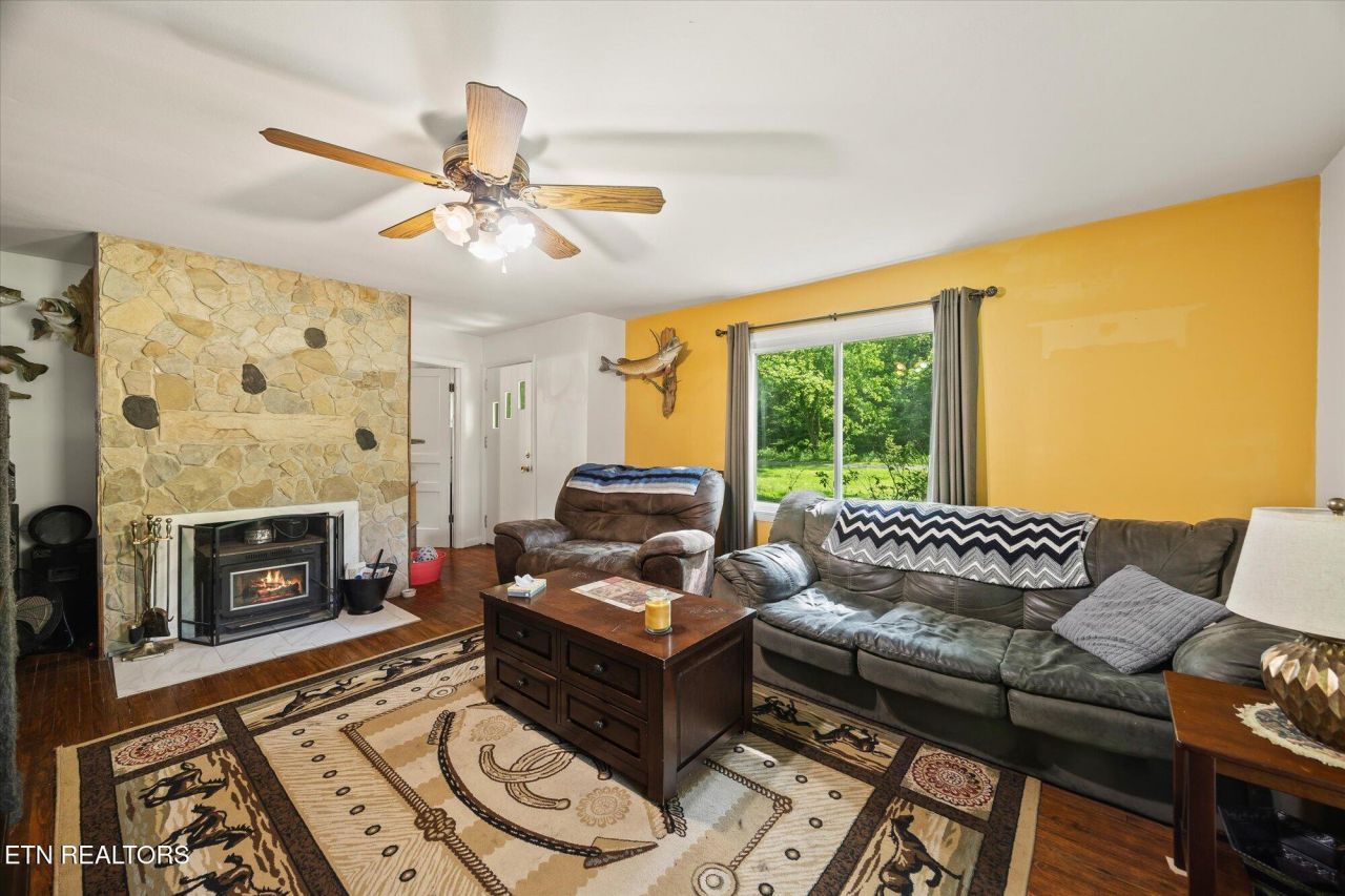 Welcome to your dream country retreat! Nestled on over 33 rolling acres of scenic landscape this exceptional property offers the perfect blend of comfort, functionality and natural beauty. Ideal for livestock enthusiasts. The land features multiple fenced areas and automatic water troughs conveniently placed throughout. A large well-equipped barn awaits with electricity, multiple stalls, ample hay storage and a dedicated tack room. Everything you need for smooth daily operations.The spacious home is full of charm and practical features including a durable metal roof and a generous kitchen perfect for gatherings. Cozy up by the stunning fireplace beautifully crafted with stone sourced directly from the land. A recently remodeled full bathroom adds a modern touch to this warm inviting residence.